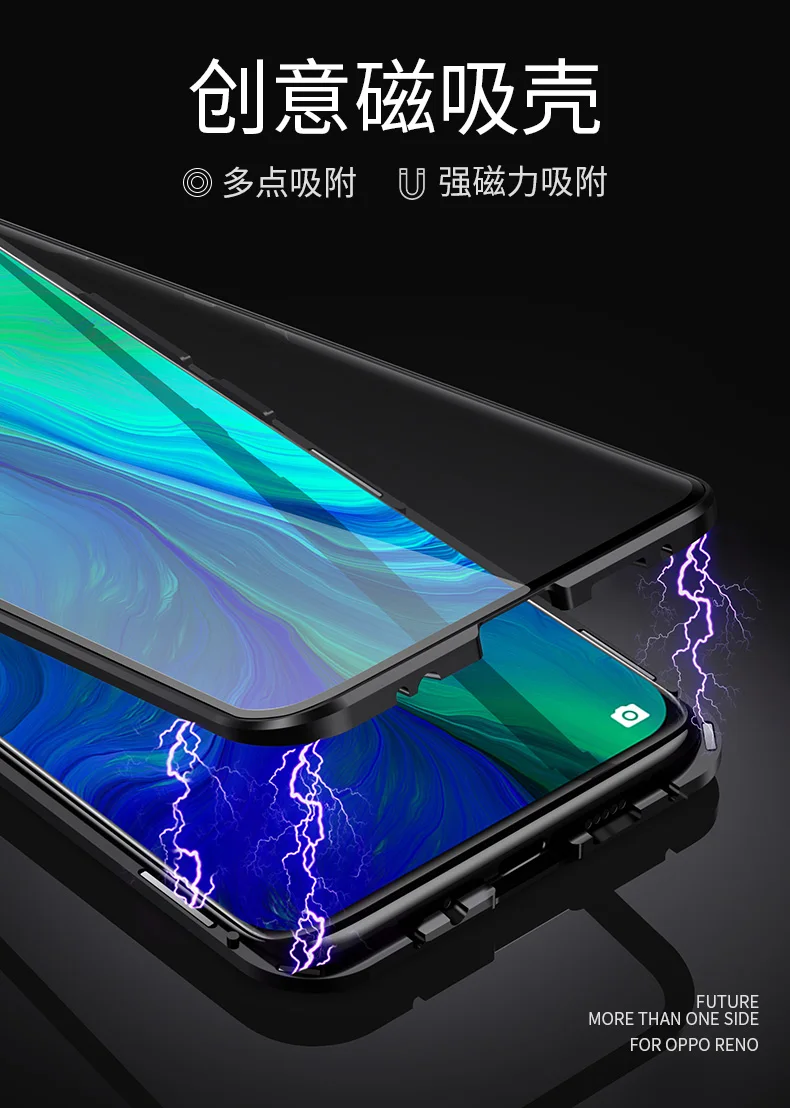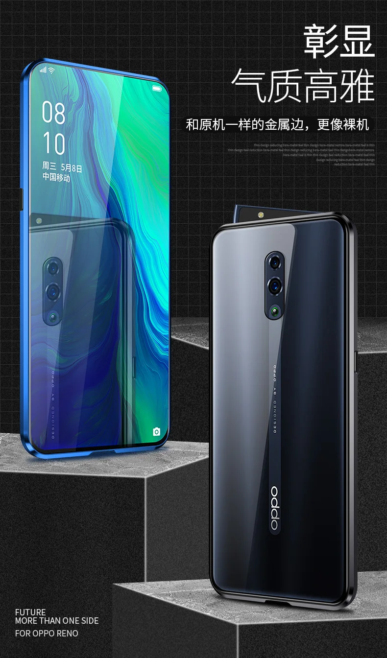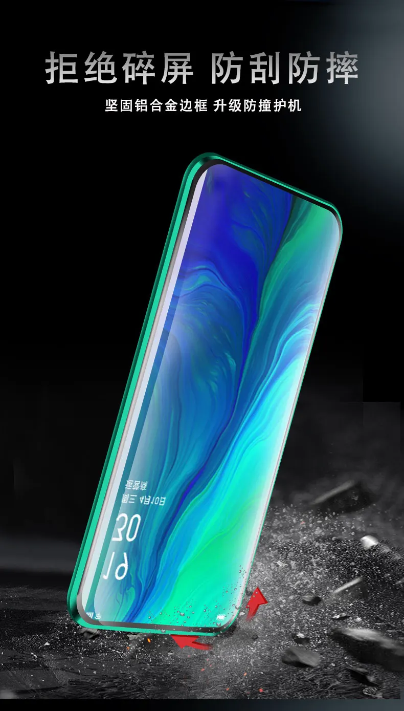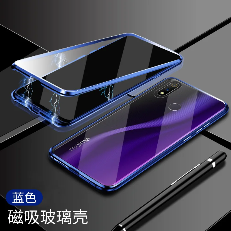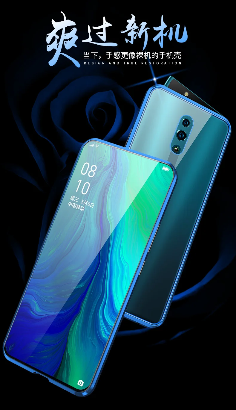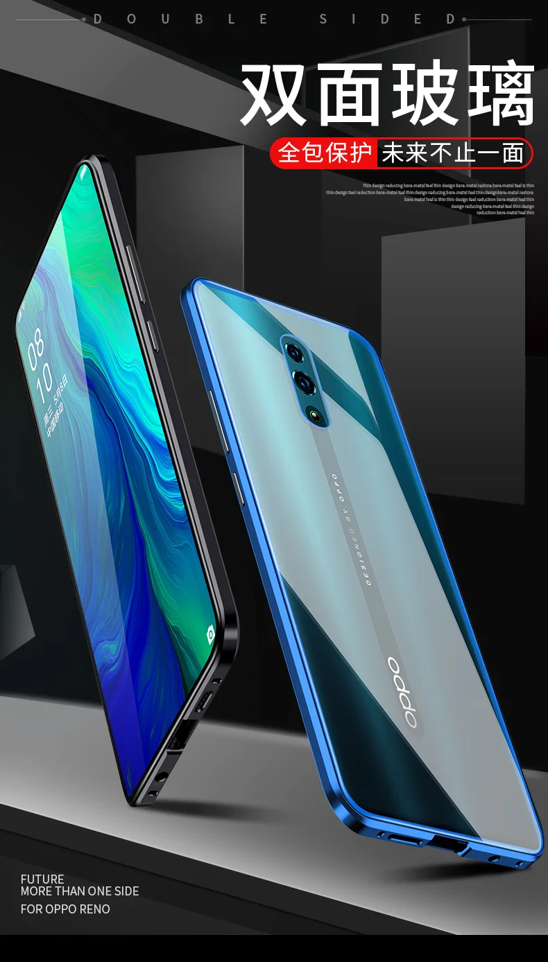 Двухсторонний прозрачный 9H закаленное стекло Магнитный адсорбционный чехол для телефона для OPPO Роскошный металлический бампер 360 градусов полный защитный чехол