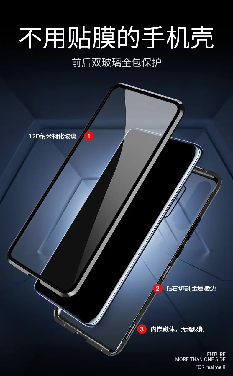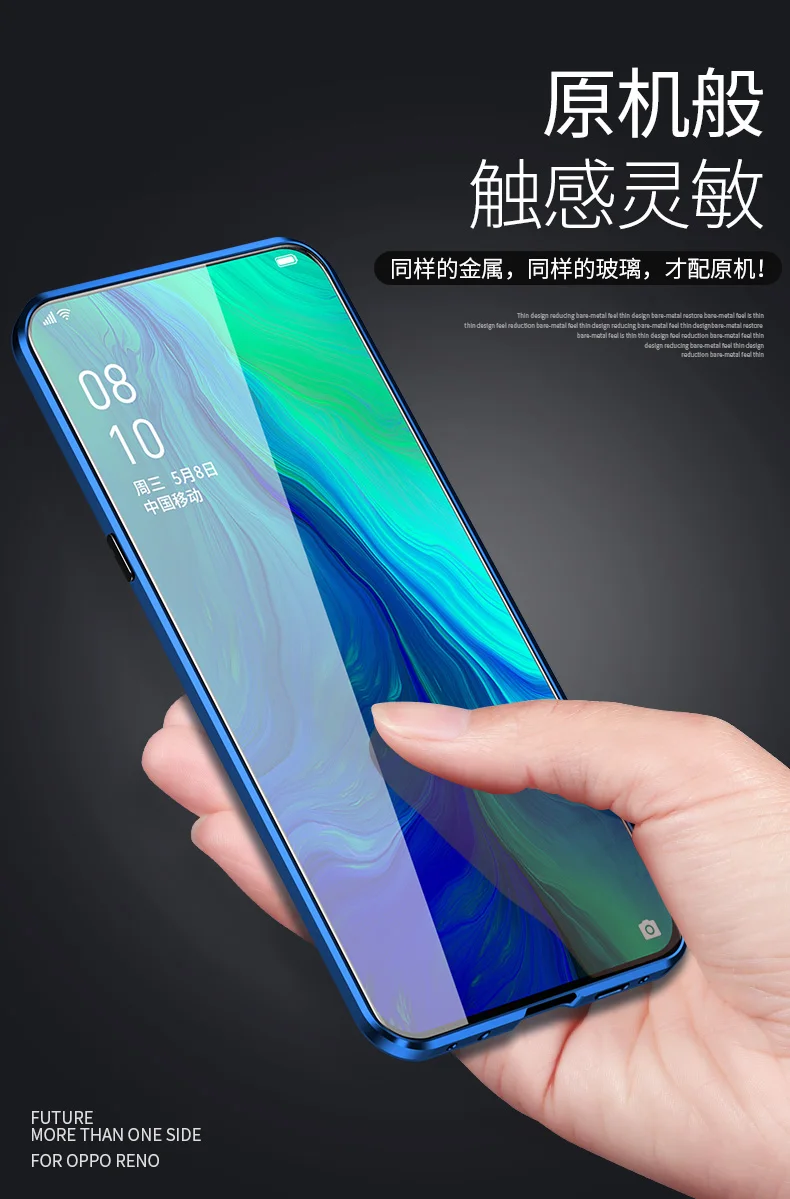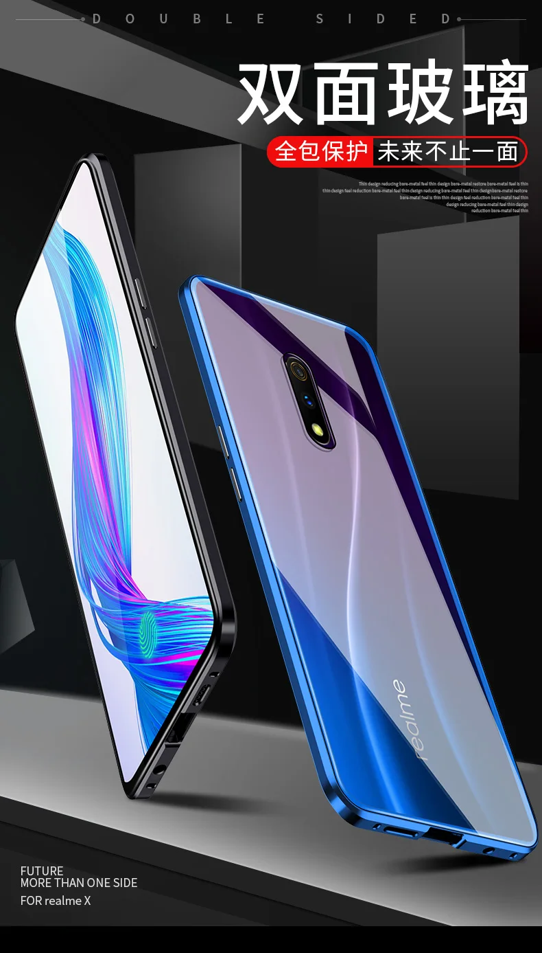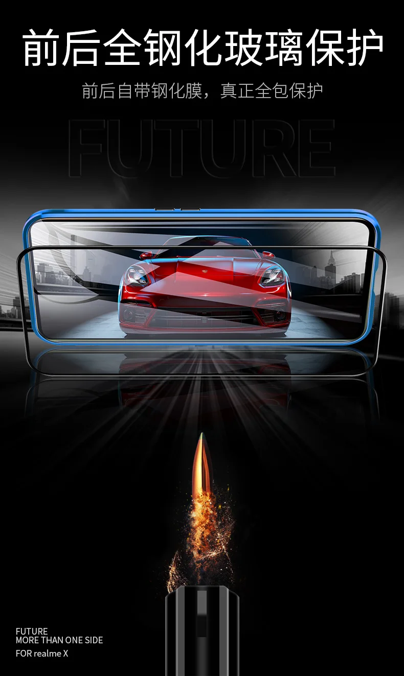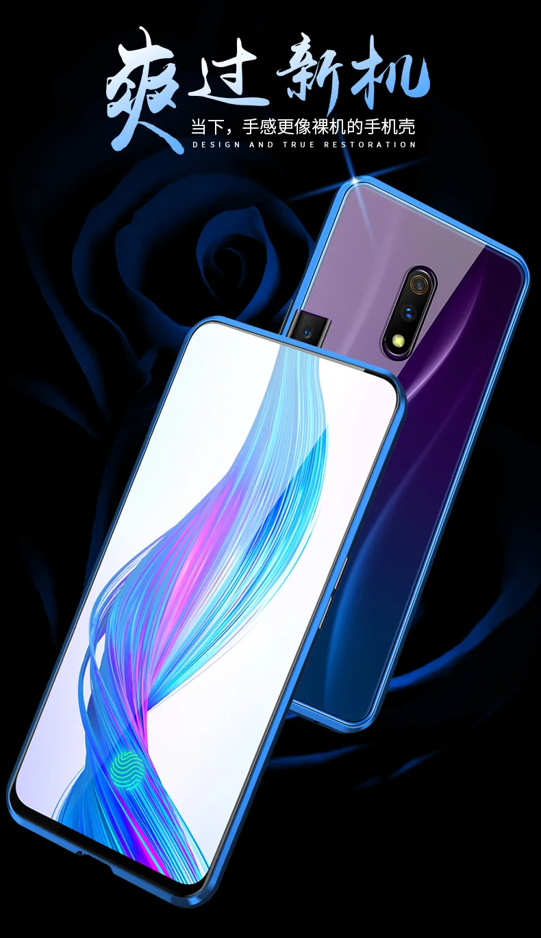 Двухсторонний прозрачный 9H закаленное стекло Магнитный адсорбционный чехол для телефона для OPPO Роскошный металлический бампер 360 градусов полный защитный чехол