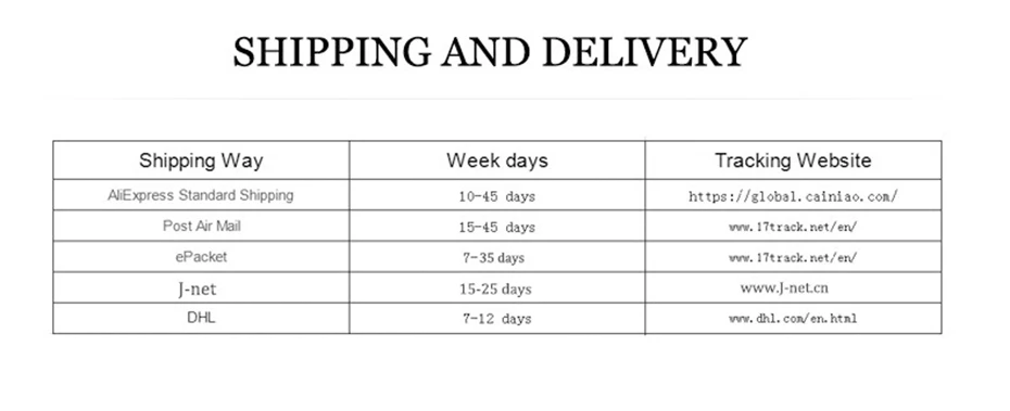 Если вы выберете доставку DHL, Fedex, EMS, UPS, товар придет быстрее — как правило, через 7–15 рабочих дней.