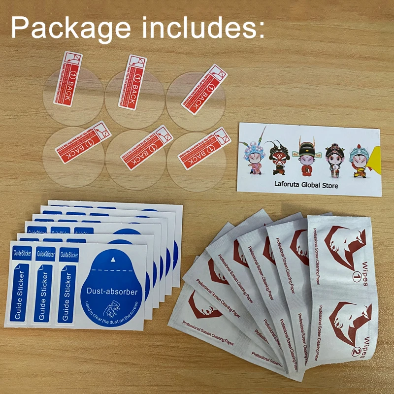 Защитная пленка из закаленного стекла x6 Влажная чистящая ткань с спиртом x6 Сухие салфетки для чистки x6 Пылезащитное снятие наклейка x6