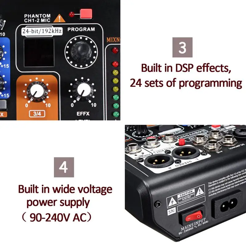 Высокое качество DSP эффект (16 типов), может обеспечить лучшие возможности обработки сигнала для музыкальных инструментов или голоса.