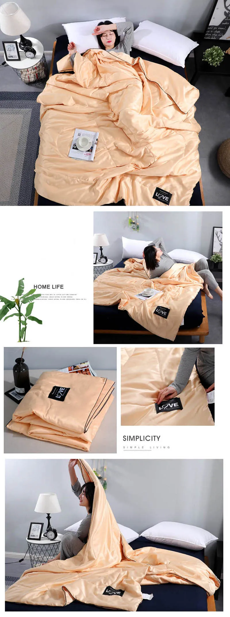 Параметры Материал: потертый шелк Размеры: 100x150 см, 150x200 см, 180x220 см, 200x230cm Цвет: серый, белый, розовый, синий, бежевый Функции: покрывало, покрывало, одеяло, летнее одеяло, одеяло для кондиционера, покрывало для двуспальной кровати Характеристики: приятная для кожи, мягкая, удобная, дышащая Примечание: возможны отклонения в 1-3 см, а в интернет-магазине возможны незначительные расхождения в цвете