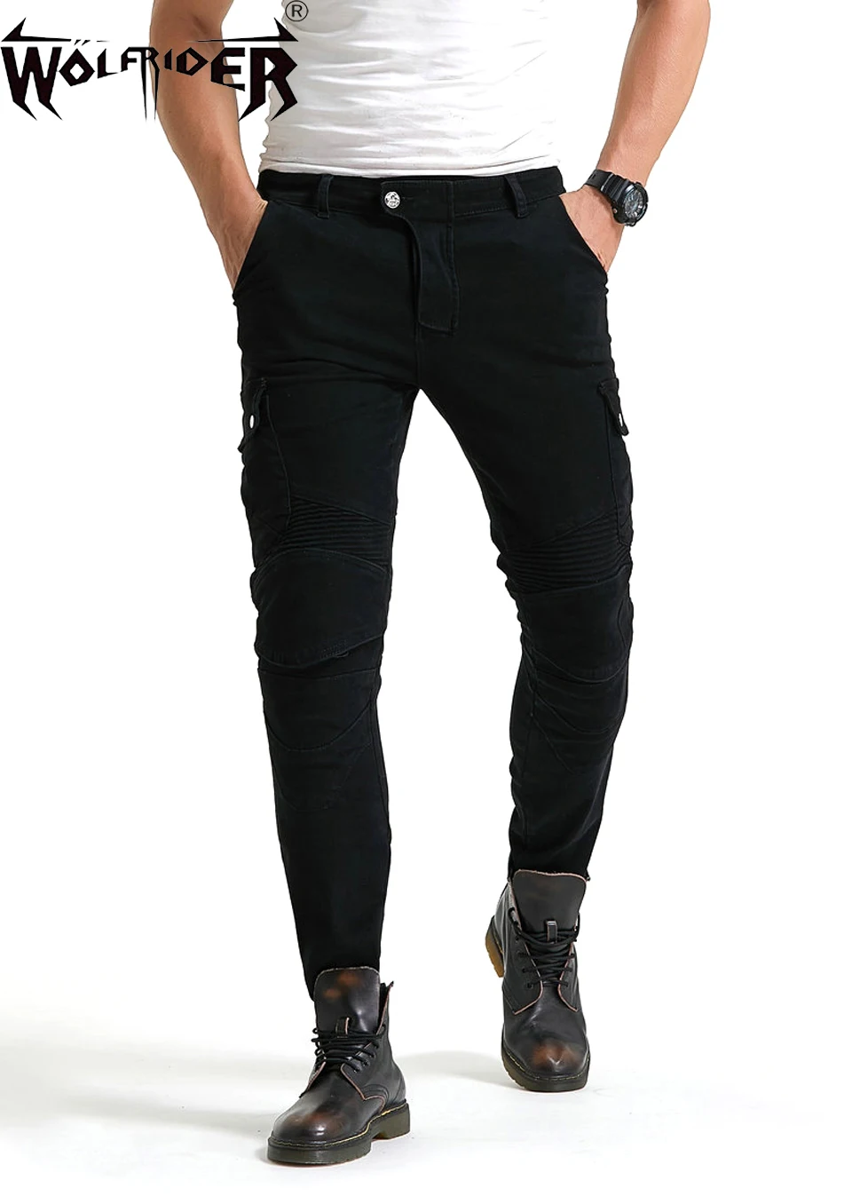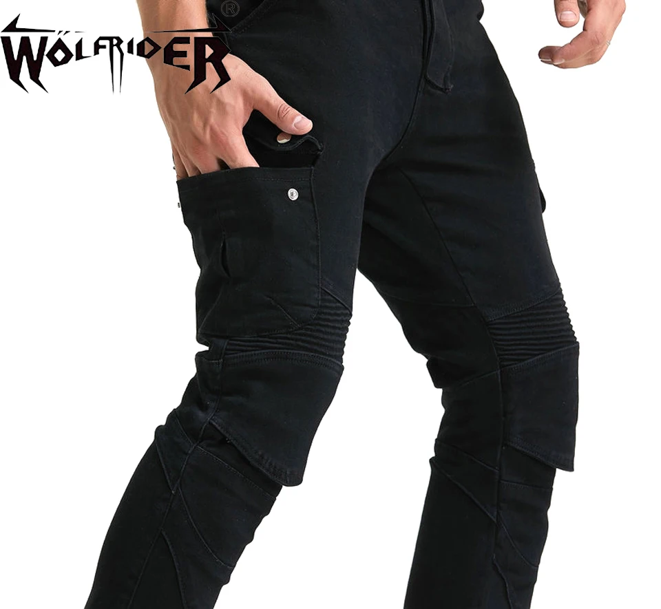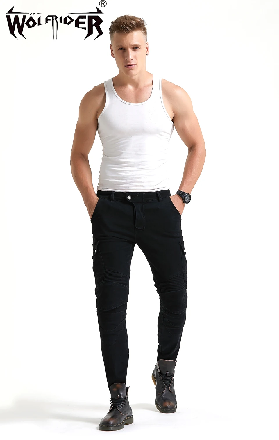 Мужские мотоциклетные джинсы WF- Aramid черного цвета