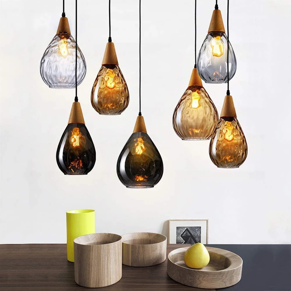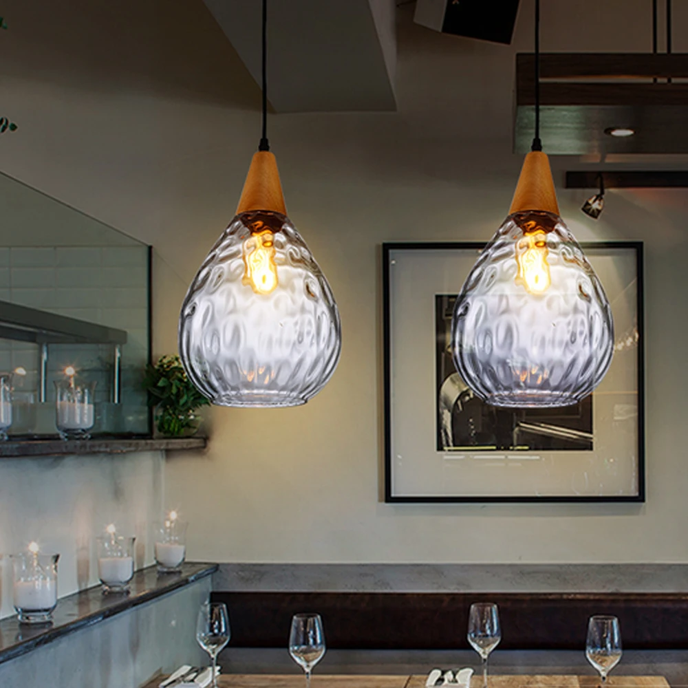 Светильник ingview Nordic E27, светодиодный подвесной светильник s, капли воды, стекло, дерево, лофт, Подвесная лампа, кухонный светильник для лофта, кухня, остров, кафе, бар, столовая, E27, лампа Эдисона, подвесные светильники