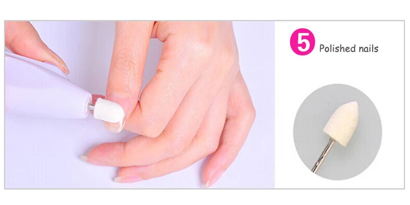 № 1 металлическая заточка головы-Обрезка углов ногтей, толстая омертвевшая кожа, ручные коконы Заточка головы № 2-острый шлифовальный станок, для углов ногтей Шлифовальная головка № 3-цилиндрическая шлифовка для ногтей № 4 Шлифовальная головка ---- шлифовка в форме диска, делает срез ногтей более гладким и гладким № 5 полировальная головка ---- Чистящая поверхность ногтей