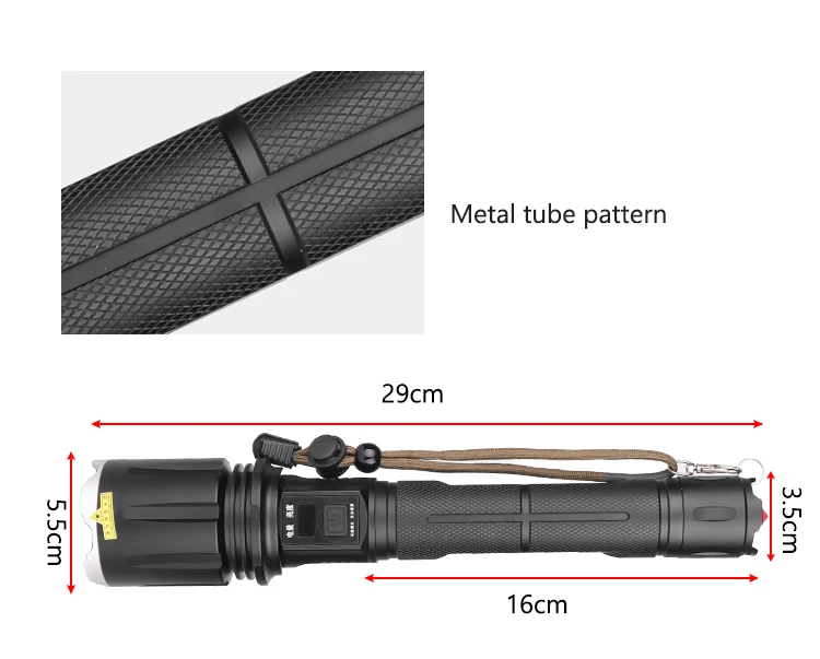 Параметры продукта Бренд: AEFJ Светильник лампы: MTG2 Размеры: 29*5,5*3,5 см Вес нетто: 462 г Материал: алюминиевый сплав Переключатель: кнопочный переключатель Аккумулятор: 2*26650/2*18650 Режим переключения: 50%-15%-SOS-двойное нажатие 100% Режим масштабирования: телескопический зум Способ зарядки: Зарядка Micro USB Особенности: 1. В этом изделии используются лампы MTG2, цветовая температура близка к реальному солнечному свету, а яркость выше, чем у лампочек серии XHP. Максимальный Выход люменов может достигать 6500. 2. Высококачественный Тактический фонарик высокой яркости, идеально подходит для охоты, приключений и других видов активного отдыха. 3. У этого продукта есть функция индикации мощности и яркости, которая не только может четко понять использование батареи, но и понять яркость, нажмите и удерживайте переключатель, чтобы регулировать яркость 4. Функции USB входа и выхода для зарядки телефона 5. Хвост молоток дизайн, используется для самозащиты в чрезвычайных ситуациях