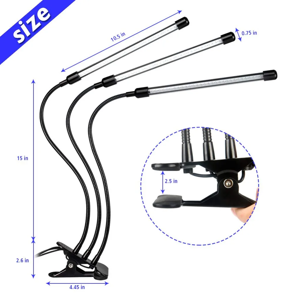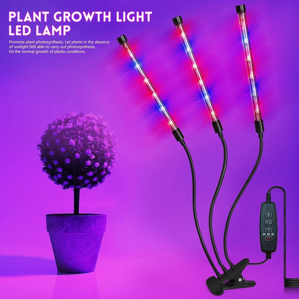 Отзывы о Светодиодный фитолампа 30 Вт Triple 3 Head с функцией таймера и регулировкой яркости для выращивания цветов овощей домашних растений в закрытом грунте.