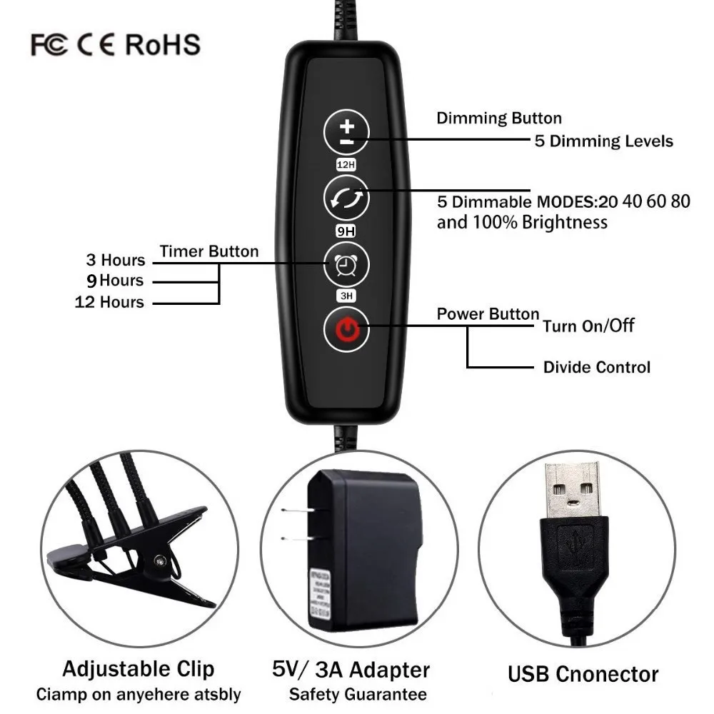 Description Особенности:Функция таймера: растущий светильник CAIYUE оснащен функцией таймера, вам не нужно беспокоиться, забыв выключить светильник, так как он автоматически выключается через 3 часа/9 часов/12 часов работы. Автоматическое включение/выключение: наши светодиодные лампы для выращивания растений улучшают функцию синхронизации, после установки таймера он автоматически включается и выключается каждый день. Вам не придется повторять одну и ту же работу каждый день. (Советы: чехол бесперебойного питания) 3 режима освещения: красный/синий/красный и синий, синий свет, чтобы помочь вашим растениям адсорбировать гораздо больше энергии синтеза хлорофилла, чтобы помочь им прорастать. Красный свет способствует улучшению фотосинтеза ваших растений, прорастанию, цветению, улучшению результатов. 5 уровней затемнения: светодиодный светильник с 5 уровнями регулируемой яркости для удовлетворения растущих потребностей различных растений на различных этапах, вы можете регулировать яркость светильник в соответствии с потребностями растений. Широко используется: лампа для выращивания растений CAIYUE подходит для балконов, теплиц, заводов растений, комнатных садов, теплиц, тканевой культуры и т. Д. Подходит для суккулентов, растений в горшках, цветущих растений и других фруктов и овощей.Описание:Модель: CY-Z003 Материал: алюминий + ПК Мощность: 30 Вт Световой поток: 864лм Цвет: Красный: синий = 2:1(36:18) Угол луча: 120 градусов Угол облучения: 360 градусов Спектр: Красный светильник 660нм, синий светильник 460нм Режим переключения: кнопочный переключатель Режим синхронизации: 3H/9H/12H, время памяти цикла, без ручного управления Спектральный режим: Красный светильник, синий светильник, красный синий светильник, три вида бесспектрального переключения Режим затемнения: 20%, 40%, 60%, 80%, 100% пять уровней свободного затемнения Рабочая температура:-30 ℃ ~ + 75 ℃ Уровень защиты: IP44 Срок службы: 50000 чA. Список посылка (USB):1 светильник для выращивания с usb-кабелем 1 x Руководство пользователяB. Посылка (вилка США/ЕС/Австралии/Великобритании):1 светильник xGrow с usb-кабелем 1 х адаптер (ЕС/США/Австралия/Великобритания подходит для вас) 1 x Руководство пользователяПрименение:Различные цветочные растения: тюльпаны, гвоздики, пионы, лилии, розы и т. Д.; Различные овощи: перец, баклажаны, помидоры, капуста, салат и т. Д.; Все виды суккулентов: белый медведь, озеро Sun Moon, Helena, оригинальные зеленые когти, снежные кролики и т. д.; Также подходит для внутреннего сада или комнатного ландшафта в горшке.