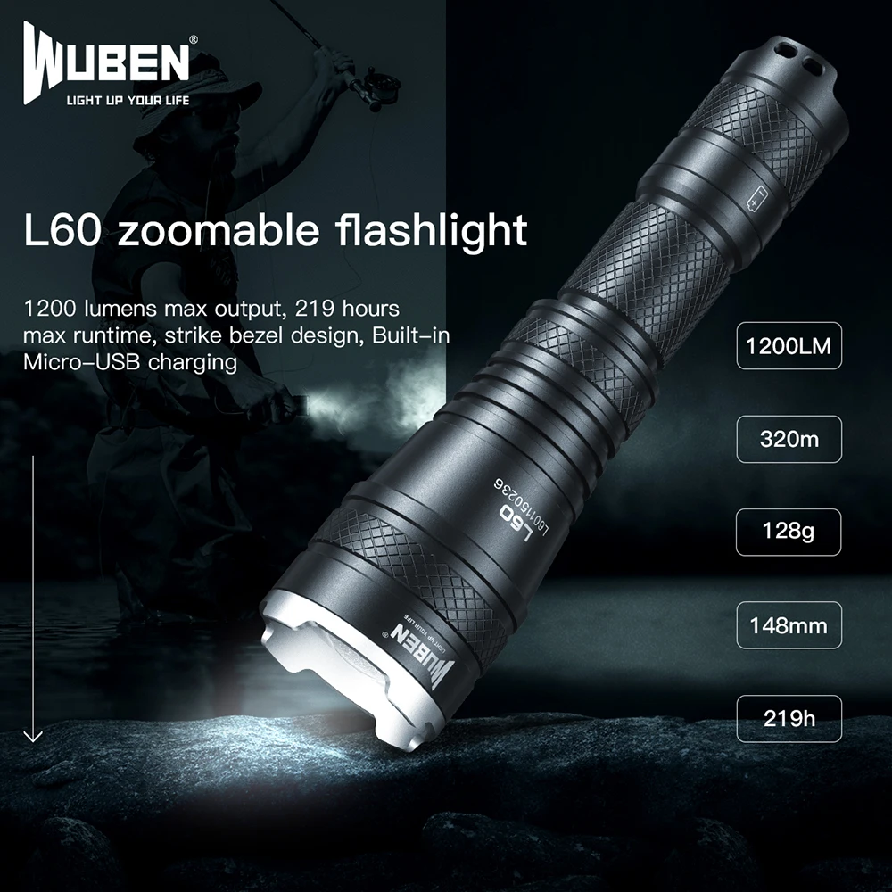 WUBEN L60 светодиодный масштабируемый фонарик-- Фонарик WUBEN L60 использует светодиод CREE XPL, максимальный выход до 1200 люменов, максимальное расстояние луча до 320 метров (1050 футов).-Он имеет 4 основных режима (высокий/средний/низкий/Эко, с функцией памяти режима) и один режим вспышки (SOS) для аварийной ситуации.-Он имеет встроенный порт для зарядки Micro-USB, который может заряжать фонарик непосредственно с перезаряжаемой литий-ионной батареей 18650 внутри фонарика. Он также может использовать 2 батареи CR123A в качестве резервных батарей, когда нет доступа к зарядке.Функция масштабирования-Вращение корпуса фонарика для увеличения или уменьшения зума для различных целей.-Вращение для изменения фокуса делает луч более стабильным.-Предупреждение о низкой мощности: когда питание аккумулятора может длиться менее 30 минут, фонарик будет мигать каждые 5 минут.-Индикация зарядки: красный свет означает зарядку, зеленый свет означает завершение зарядки. Полная зарядка занимает около 4 часов.-- Простота в эксплуатации: одна кнопка для всех операций.-- Вес: 175 г/6,17 унций (с батареей)-Размеры: 5,83x1,54 дюйма (Д x Г)Одна задняя Кнопка 5 режимов освещения-4 основных режима освещения: высокий/1200LM/1,8 H, средний/360LM/3 H, низкий/72LM/15,4 H, Eco/4. 8LM/219 H.-Фонарик L60 имеет функцию памяти режима для 4 основных режимов, отлично подходит для ежедневного или наружного использования.-SOS для аварийной ситуации: SOS/200 лм.Перезаряжаемый USB-- Как только предупреждение о низкой мощности здесь, вы можете зарядить его непосредственно с помощью прилагаемого usb-кабеля от банка питания, верхней части круга или адаптеров.-В комплект входит литий-ионная аккумуляторная батарея 2600 мАч 18650, которая может работать около 219 часов в экологическом режиме после полной зарядки. Он также совместим с 2 батареями CR123A (не входят в комплект), отличный выбор резервных батарей.Высокая водонепроницаемость-- Фонарик WUBEN L60 является водонепроницаемым IP68, может использоваться при сильном дожде и других экстремальных условиях. Отлично подходит для улицы или ежедневного использования.-Встроенный порт для зарядки Micro-USB L60 также является водонепроницаемым. Это означает, что в случае, если вы забудете покрыть его с помощью зарядного устройства, он по-прежнему водостойкий. Но имейте в виду: пожалуйста, держите порт зарядки сухим и чистым при зарядке.Водонепроницаемый зарядный портUsb-порт для зарядки L60 является водонепроницаемым. Он не повредит фонарик, Если порт зарядки будет влажным. Но, пожалуйста, держите порт зарядки сухим и чистым при зарядке.Компактный и прочныйWUBEN L60 портативный и очень удобный. Но жесткий корпус из алюминиевого сплава класса anodizing aircraft и ударопрочный 1 метр делают фонарик более прочным и долговечным.Тактическое использованиеL60 также является тактическим фонариком для его головки лотоса из алюминиевого сплава и кнопки хвоста, которые более практичны для кемпинга на открытом воздухе, пеших прогулок, езды на велосипеде и т. д.Велосипедный фонарикWUBEN L60 также может использоваться в качестве велосипедного фонарика, освещая свой путь в темноте. Держатель велосипедного освещения для WUBEN L60 является необязательным, если он нужен, пожалуйста, нажмите здесь:https:/item/4000261564506.html