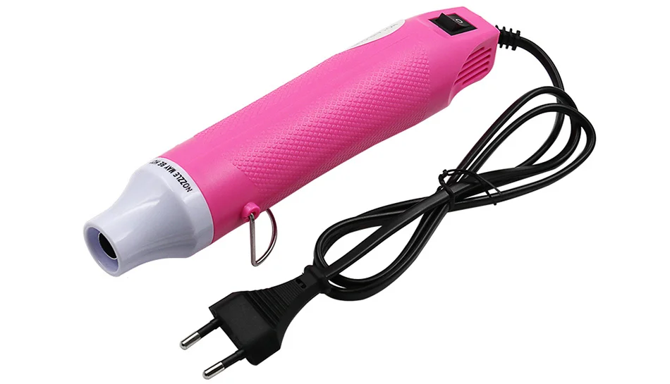 Спецификации: Особенности: -Может быть использован для нагрева рельефного порошка и термоусадочного листа -Сохранение расстояния 3-5 см от работы и около 45 градусов для нагрева до завершения работы. -После завершения, используйте тепловую пушку при высокой температуре, чтобы продувать несколько минут, -Он не только может добавить свою твердость, но и яркость -Температура не регулируется, по идее, она может достигать 200 градусов в течение нескольких секунд -Не работайте более 10 минут, дуйте под углом 45 градусов, чтобы не засасывать тепло. -Будьте внимательны при использовании Технические характеристики: Материал: сталь, пластик Рабочая температура: 200 °C Номинальная мощность: 300 Вт Номинальное напряжение: 110 В/230 В 50-60 Гц Тип вилки: штепсельная вилка EU/US/EN Примечание: Никогда не прикасайтесь к горячей насадке или плавящему клею. Держите его подальше от детей.