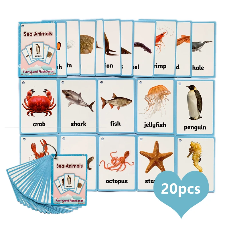Морские животные Раннее Обучение малышей флэш-карты английское слово карта памяти для детей Лев сова утка Монтессори развивающие игрушки