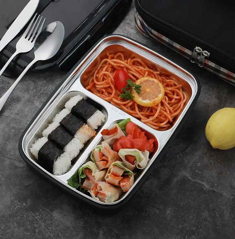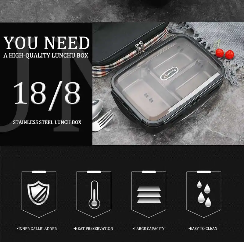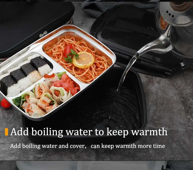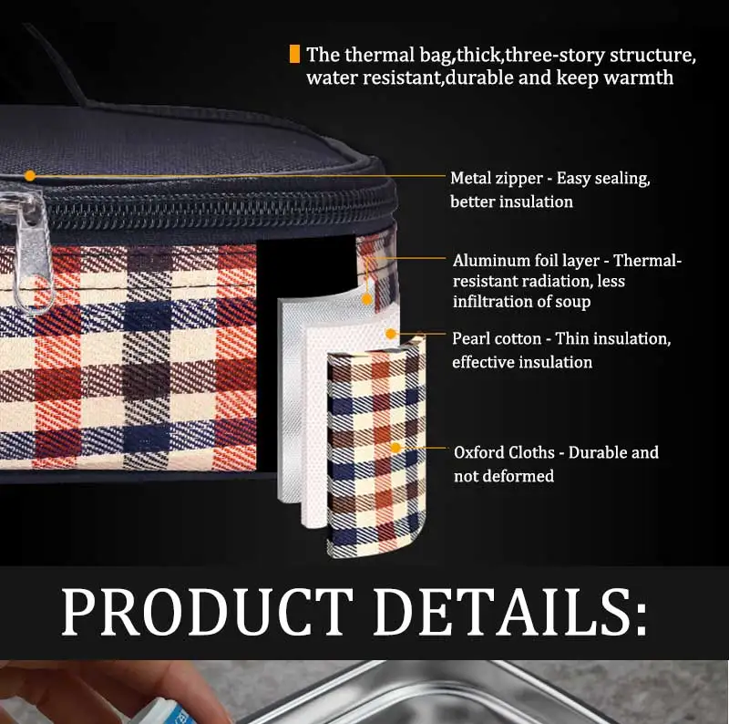 Ланч-бокс с термосом изготовлен из нержавеющей стали 304(18/8) и пищевого полипропиленового материала, никогда не ржавеют, нетоксичные, без свинца Поставляется с палочки для еды и ложки, которые подходят к крышке Поставляется с портативной термосумкой, обратите внимание здесь, не простой мешочек для хранения на рынке, эта Термосумка специализируется на дизайне коробки для ланча, задержке сохранения тепла в течение почти одного часа, идеально подходит для пикников, походов, поездок и активного отдыха Герметичное уплотнение от слоя к слою Ланч-бокс с отделениями, может хранить разные продукты, избегайте застоев между едой Добавьте кипяток в дно, чтобы сохранить температуру