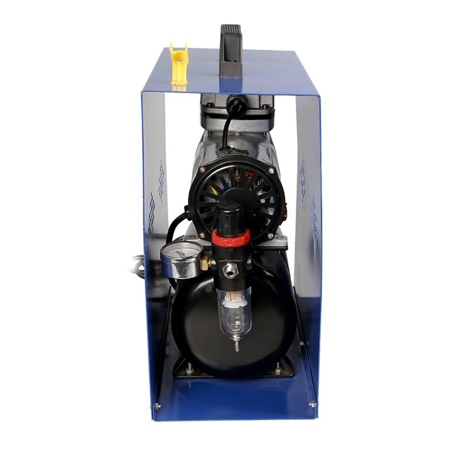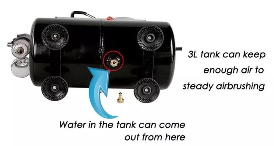 Номер товара: AC-186 компрессор аэрограф с баком Тип: поршень Мощность: 1/5 л.с. Напряжение: 220-240 В/50 Гц; 110-120 В, 220 В/60 Гц Поток воздуха: 20-23 л/мин Автоматическое давление запуска: 2,8 бар (42PSI) Автоматическое давление остановки: 4 бар (58PSI) Фитинг: манометр; Регулятор давления; Воздушный фильтр Соединения: с подключением 1/8 "BSP Воздушный бак: 3.0л Вес нетто: 5,35 кг Размер: 310*130*310 мм Электрический кабель: 1,8 м Размеры коробки: 65*33,5*37 см/4 шт. Сертификация: CE,FCC,ROHS N.W./G.W.:22 кг/24 кг Предохранительный клапан автоматически отпускает давление воздуха, когда давление над 6 бар в воздушном баке Характеристика: Портативный и легкий; Герметично защищен; При уровне шума 50 дБ; Автоостановка, Автозапуск; Повторная настройка; Костюм для 0,2 мм-1,0 мм Аэрограф