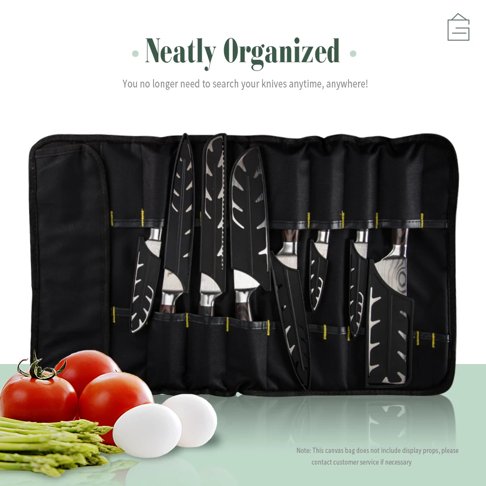 Ножевой Перевозчик вмещает до 10 ножей/инструментов: 10 слотов для ножей, начиная от нож для очистки до 8 дюймовых ножей плюс большой мешочек для вашего мясорубки, ножниц или больших инструментов, плюс много слотов для ложечки дегустационные или посуда!