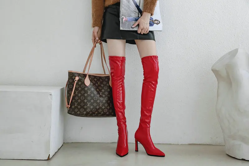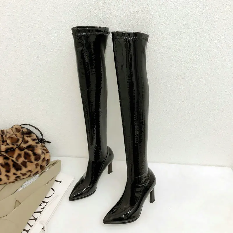 Эластичные сапоги на блочном каблуке 8,5 см