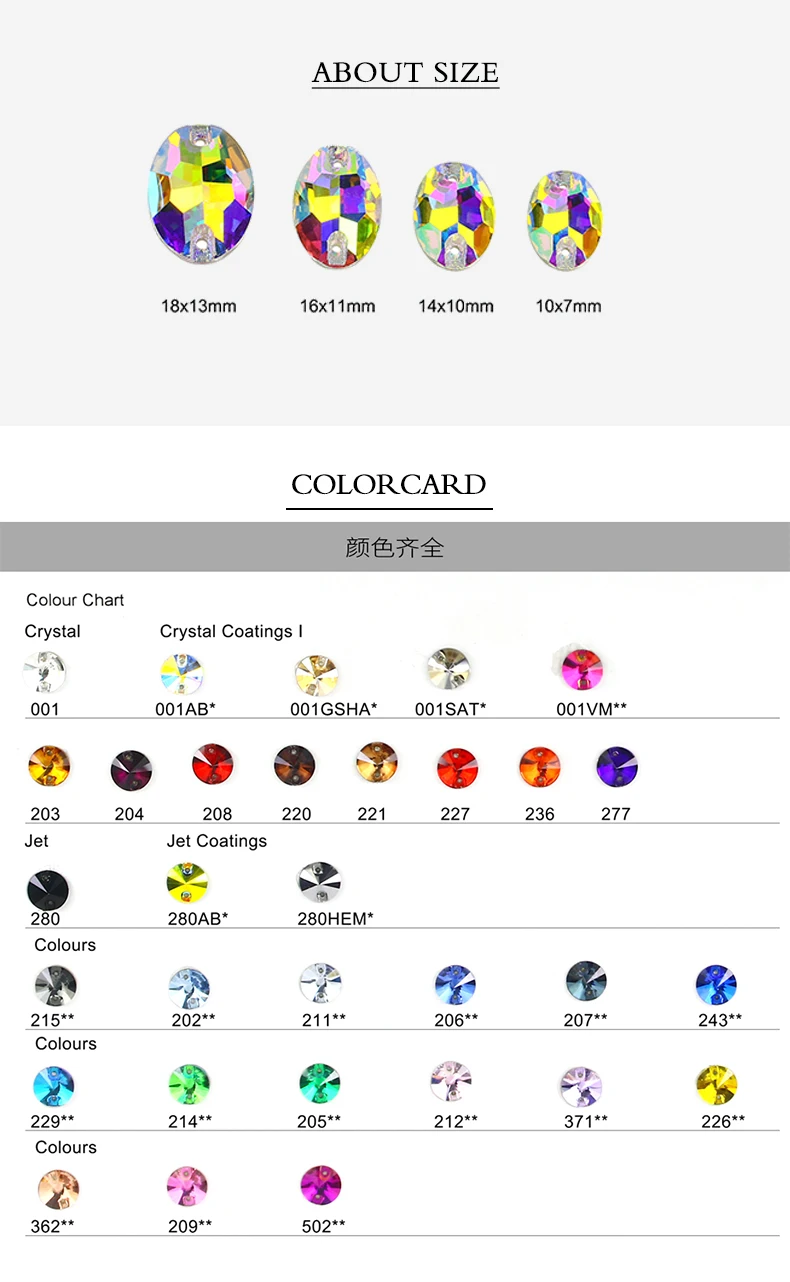 Овальные кристаллы AB Стразы для шитья с плоской задней частью Пришивные кристаллы и стразы аппликация для одежды свадебное платье Товар: треугольный пошив хрустальный камень носорога Бренд: JUNJIAO Номер товара: S3063 Цвет: AB (цвет будет отличаться как светильник, так и экран) Материал: кристалл K5 Применение: ювелирные изделия, ожерелье, кольцо, одежда, обувь, сумки, Нейл-арт, украшения, аксессуары DIY... Размер и количество: 10x7mm-10шт 14x10mm-10 шт 16x11mm-10 шт 18x13mm-10 шт