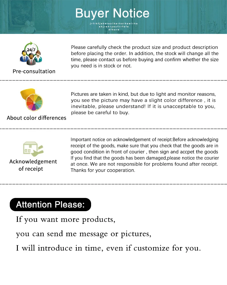 Привет, мой дорогой друг! Добро пожаловать в мой магазин. Мы являемся одним из напрямую от производителя, который имеет 15 лет производственного опыта в этой области. Это означает, что продукция в моем магазине производится нами. У нас строгий контроль качества, поэтому качество товаров в нашем магазине будет лучше! У нас большой объем поставок! Если вы хотите заказать в большом количестве, мы предоставим вам более доступную цену, желаем вам приятных покупок в моем магазине! ~ У нас также есть более высокое качество продукции для вас на выбор, пожалуйста, посетите наш магазин ~ Если вам нравится этот товар, добавьте его в корзину. Если вам нравится наш магазин, пожалуйста, обратите внимание на наш магазин. Чтобы стать поклонниками моего магазина, вы можете обратить больше внимания на новые продукты и информацию о купоне на скидку нашего магазина.