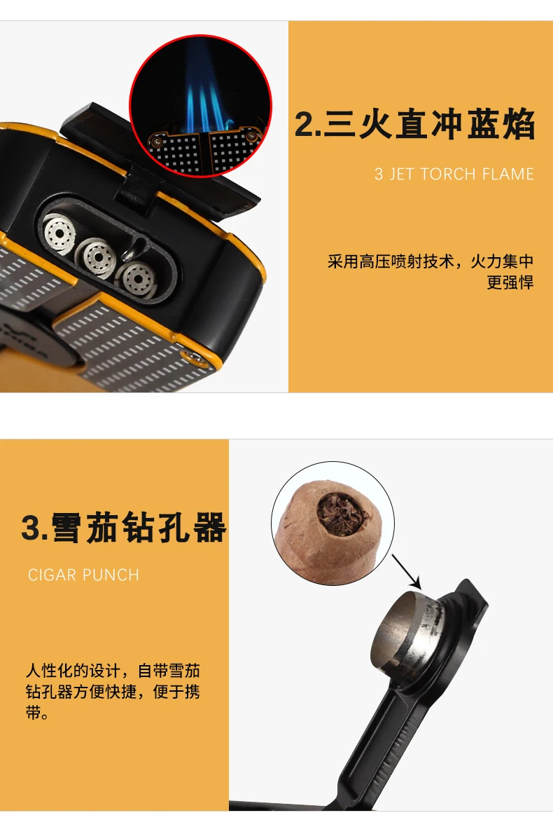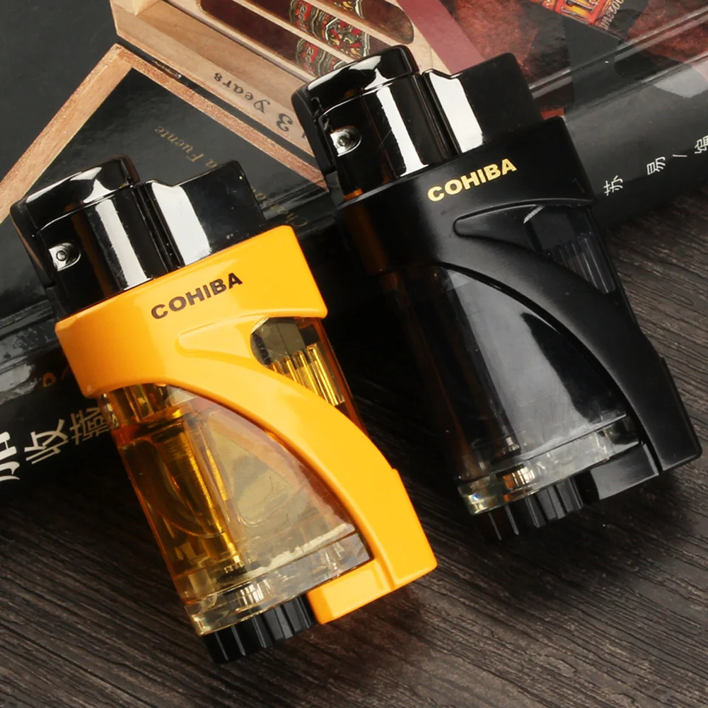 COHIBA Гаджеты зажигалка для сигар пластиковая металлическая Ветрозащитная 2 струйный фонарь зажигалки Cigare...