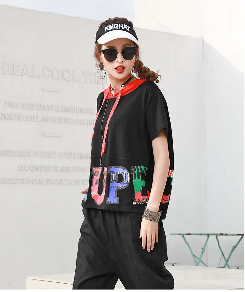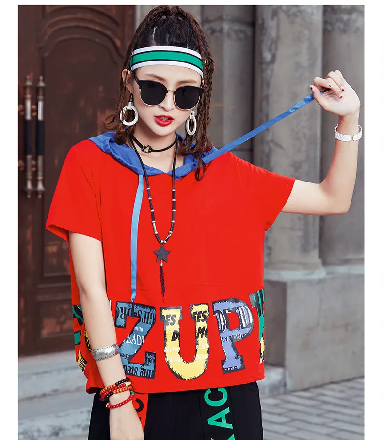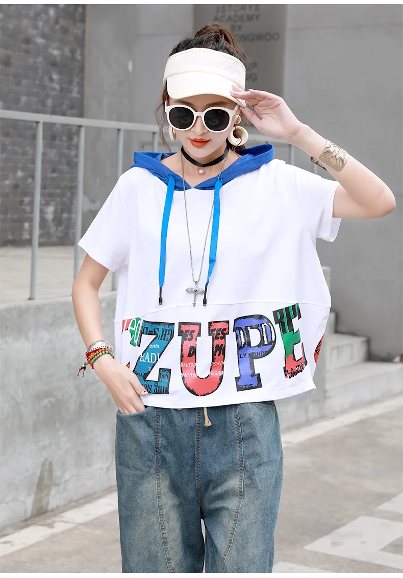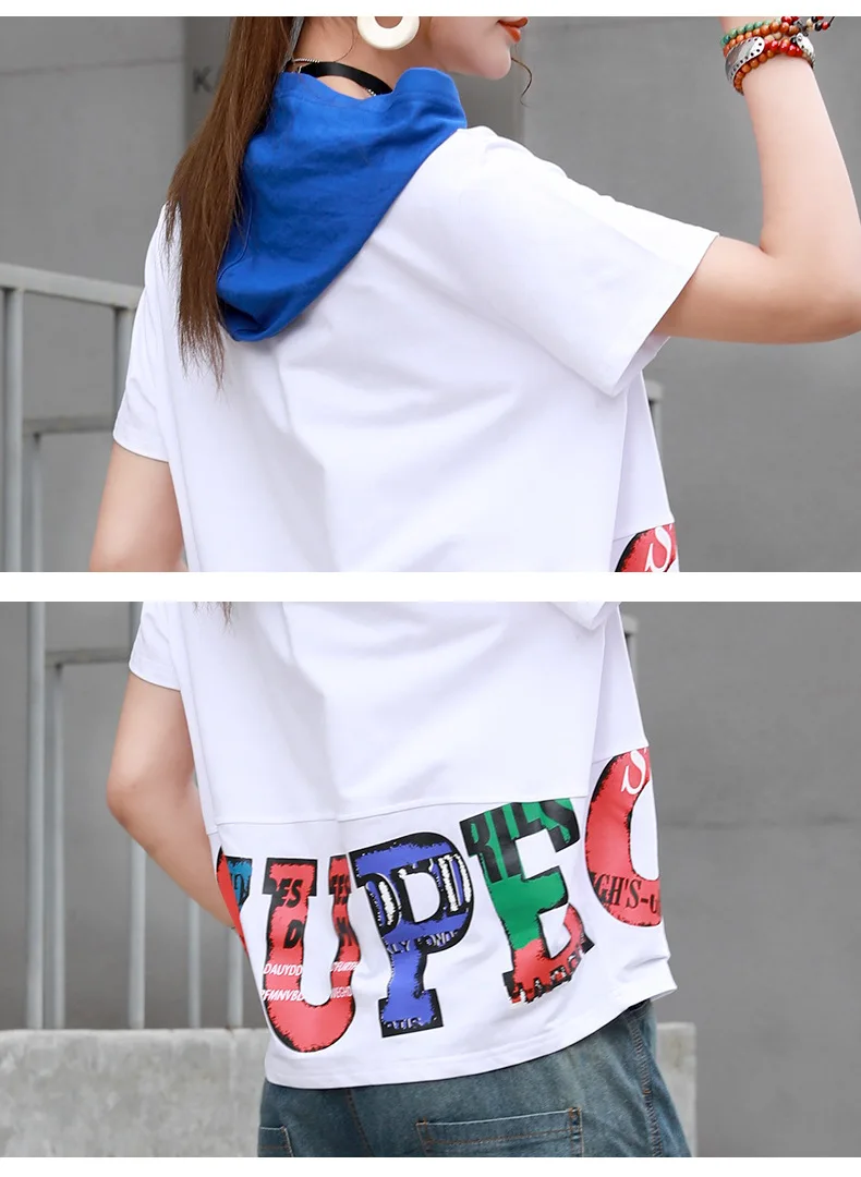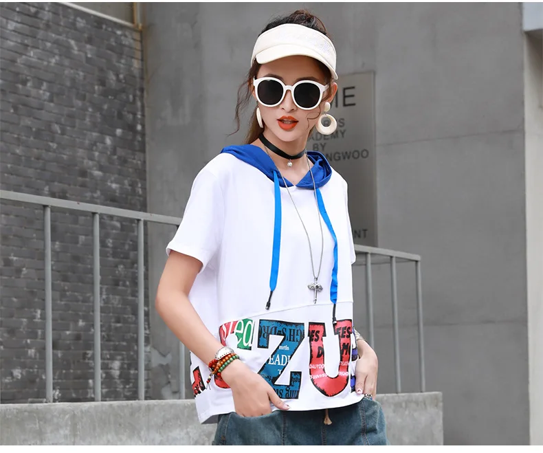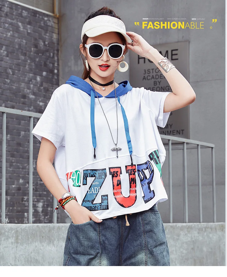 Летние в стиле хип-хоп модные футболки с капюшоном и принтом