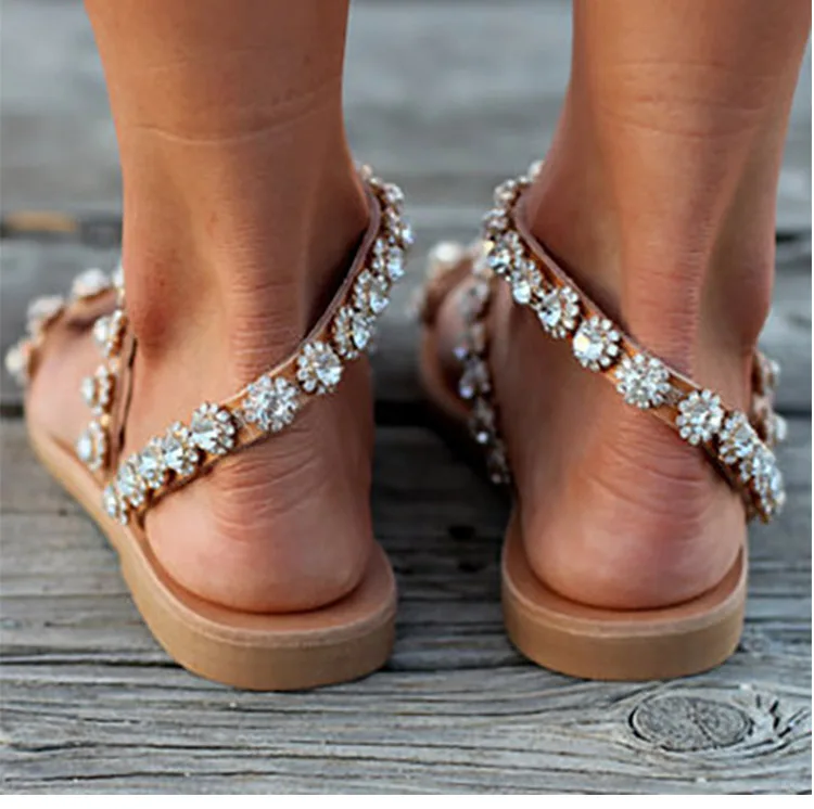 Женские сандалии в богемном стиле; Пляжная обувь для женщин; Летние сандалии; Сандалии на плоской подошве без застежки; Chaussure Femme; Вьетнамки размера плюс 43