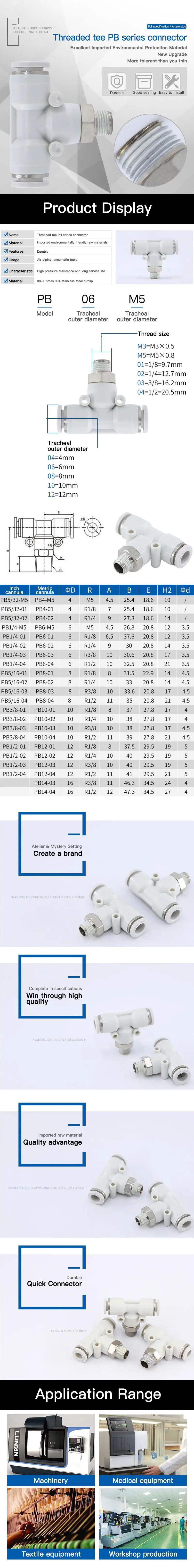 Yade пассажирский Тип Белый соединитель APB резьба T тип тройник PB4-M5 / 6-01 / 8-02 / 10-03 / 12-04 пневматические компоненты