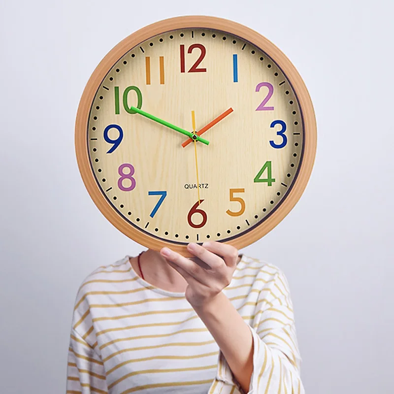 12 дюймов красочные цифры Детские Настенные часы Тихий Большой Декор не тикают настенные часы в винтажном стиле кварцевые на батарейках
