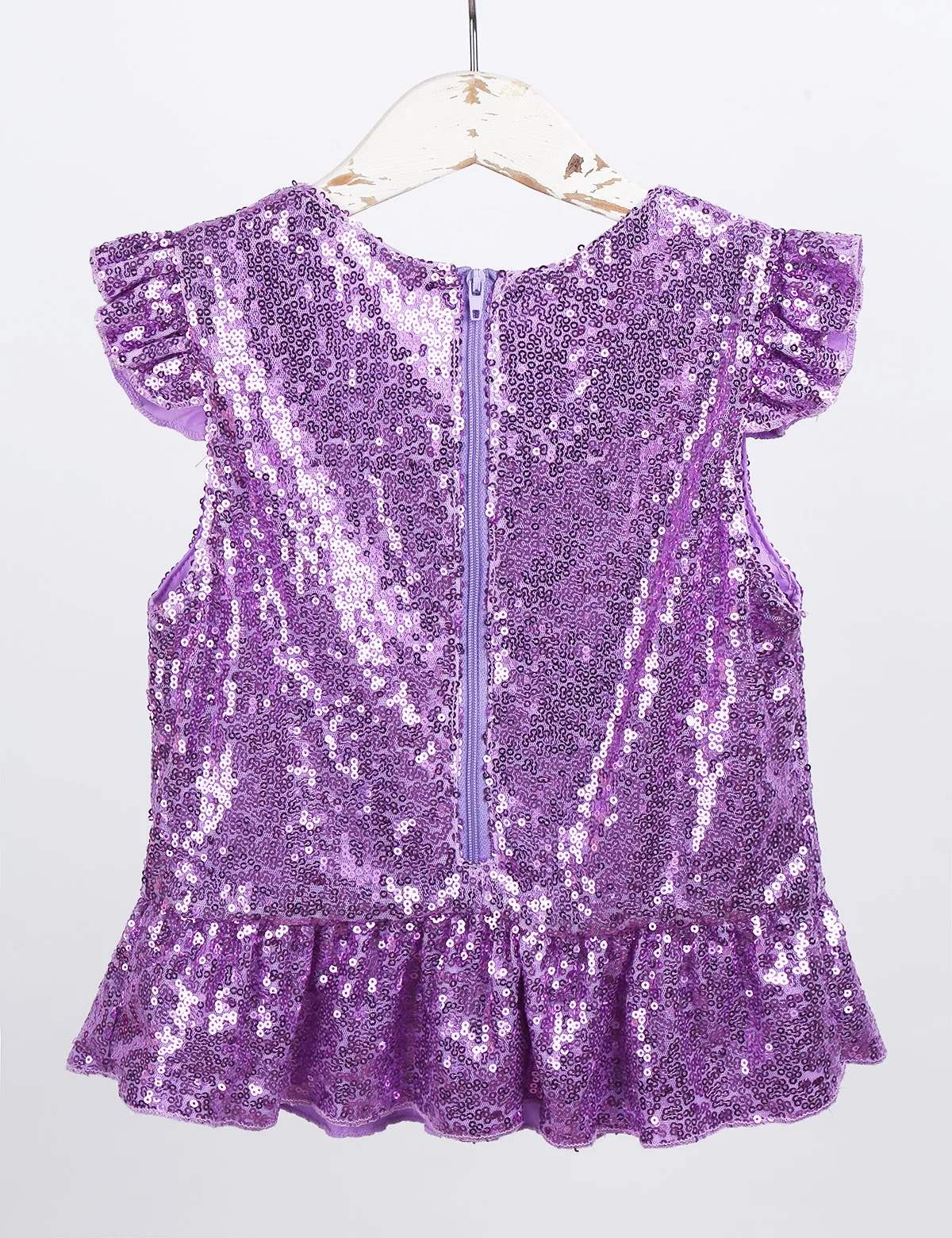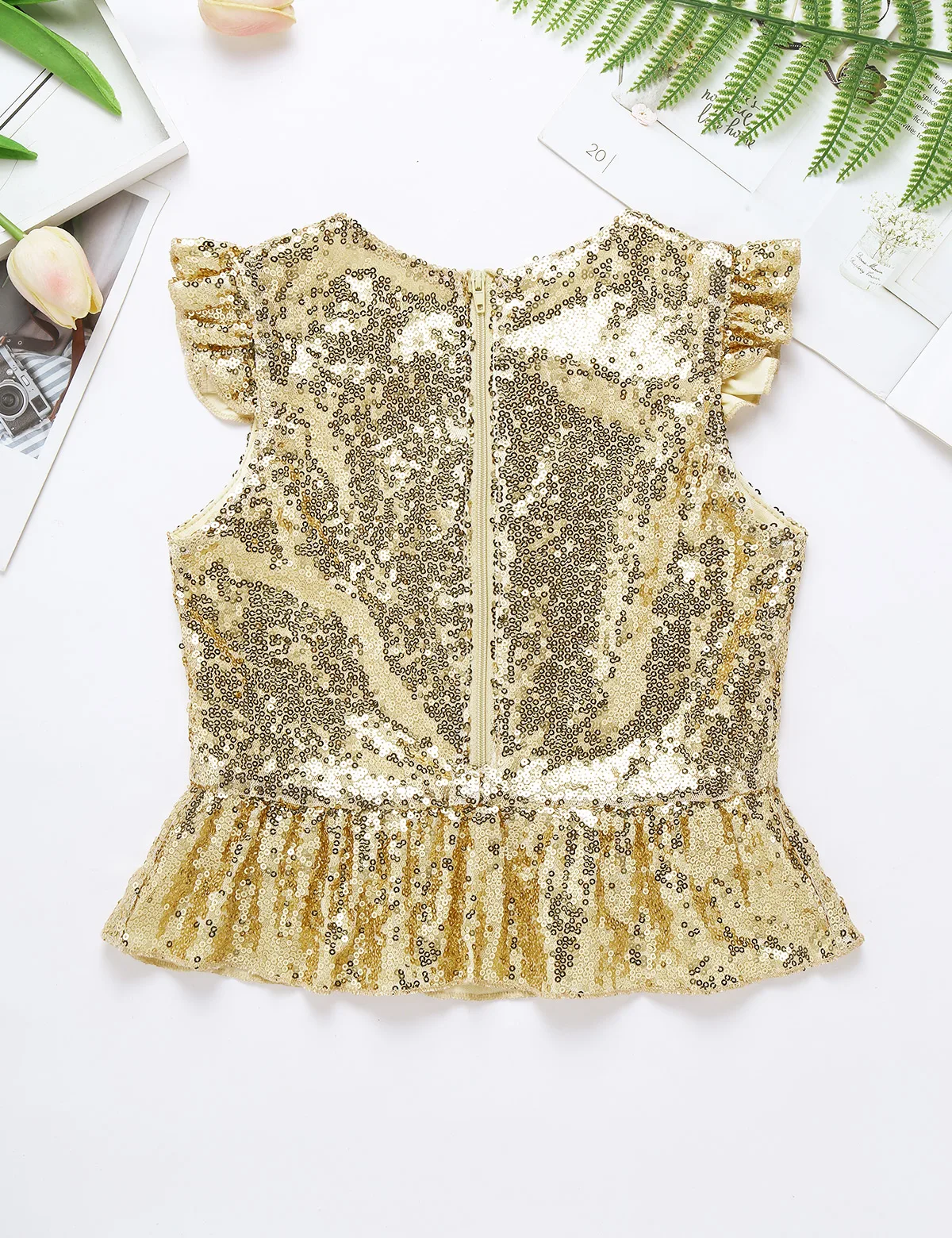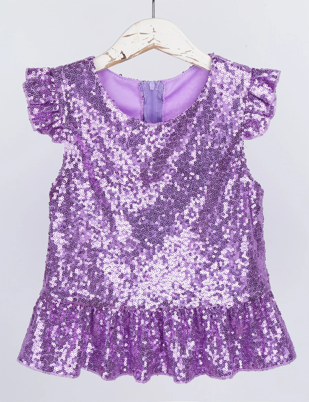 Застежка-молния сзади для удобного одевания. Подкладка для комфортного ношения. Блестящий топ для вашей девочки.