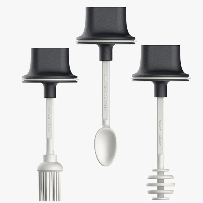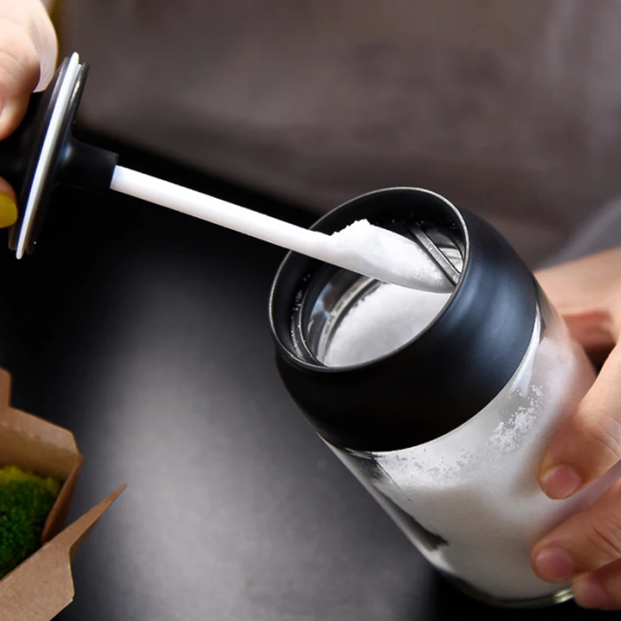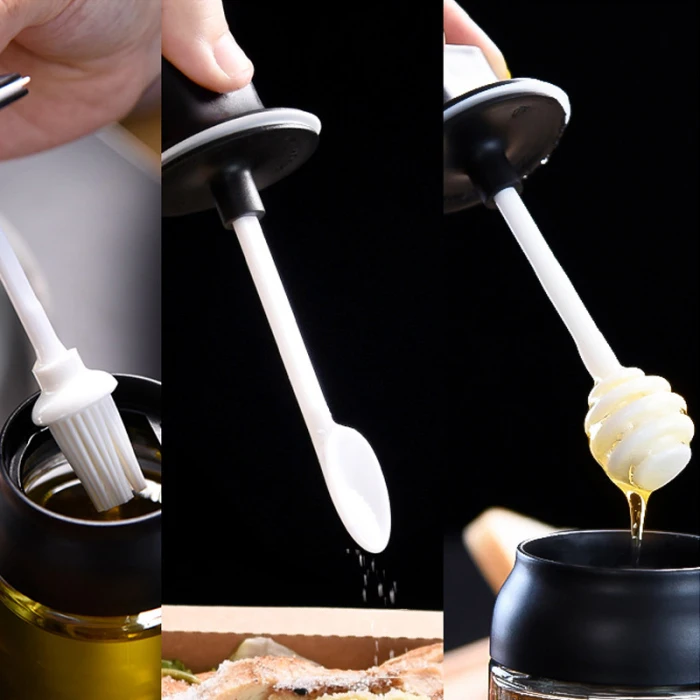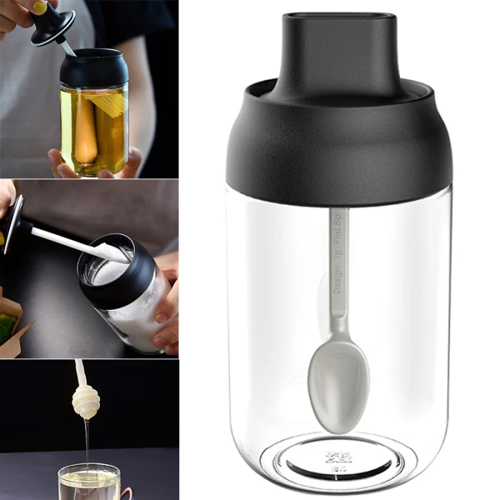 2.Уникальная Ложка и крышка в одном типе дизайна, избегайте выпадения ложки, просто откройте крышку, прикрепленную ложку/Диппер/Кисть и легко извлеките необходимые вам приправы.