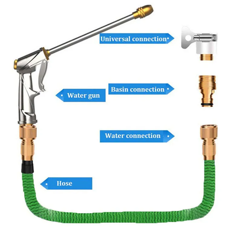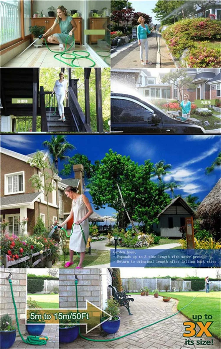 Удлиненный шланг magic Водопровод расширяемой водопроводной трубы очень удобен, и есть три способа распыления воды. Это определенно личный инструмент рядом с вашим домом. Выбирая для установки запорного клапана и большого количества оборудования, устройство облегчает использование расширяемого шланга, если вы хотите поливать или чистить сад. Основные характеристики: Сопротивление трикотажной наружной ткани обеспечивает идеальное обрыв, отсутствие деформации, запутывания и деформации -Двухъядерный латекс: шланг становится все более мощным и долговечным на рынке! Он предназначен для того, чтобы выдерживать высокое давление воды и имеет удивительные результаты -Соединение шланга: предотвращает ржавчину, коррозию и износ, более прочный, чем пластик -Экономичная вода: металлические компрессионные и резиновые чистящие аксессуары для предотвращения утечки и хранения большого количества воды -Космическая Экономика: автоматически Расширяет до 3 раз первоначальную длину и прыгает назад, когда не используется, легко хранить -Несколько применений: подходит для электрических стиральных машин высокого давления, подходит для газонов, посадки, очистки окон, напольных покрытий и т. д. для удовлетворения всех ваших потребностей