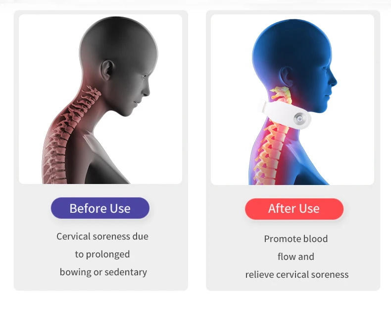 Material: ABS Colors: White Gray Item: Cervical Massager Power Supply: Charge with USB Size: 21x17.5x65cm Rated Input: 5V Massage Modes: Scrapping, Pressing, Rolling, Hammering Function: Cervical Care Occasion: Home, Office, Travel Quantity: 1 Set · CARE YOUR NECK: Ease your Neck Now! Light pain on cervical vertebrae are likely to cause major problems, such as neurasthenia, memory loss and so on. Therefore, we should pay more attention to this problem. · Massager : With ergonomic U-design,The use of low-frequency electrical pulse, magnetic effect,loop traction three-synchronous treatments to form high-performance composite energy field.Latest portable electronic snap-on neck massaging device for wellness and well being as well as prevention of cervical neck pain,headache, shoulder pain. · Magnetic effect : The built-in magnetic can massage human acupoint, which can balance the nervous system, improve the oxygen supply, microcycle and the nutrition status of the tissue cells.Relieve muscle stiffness and relieve shoulder and neck pain. · APPLICATION: It can promote local muscle, and achieve the purpose of reducing inflammation, swelling, relieving pain and relieving fatigue. Applicable for cervical pain, numbness of shoulder arm, headache and dizziness.