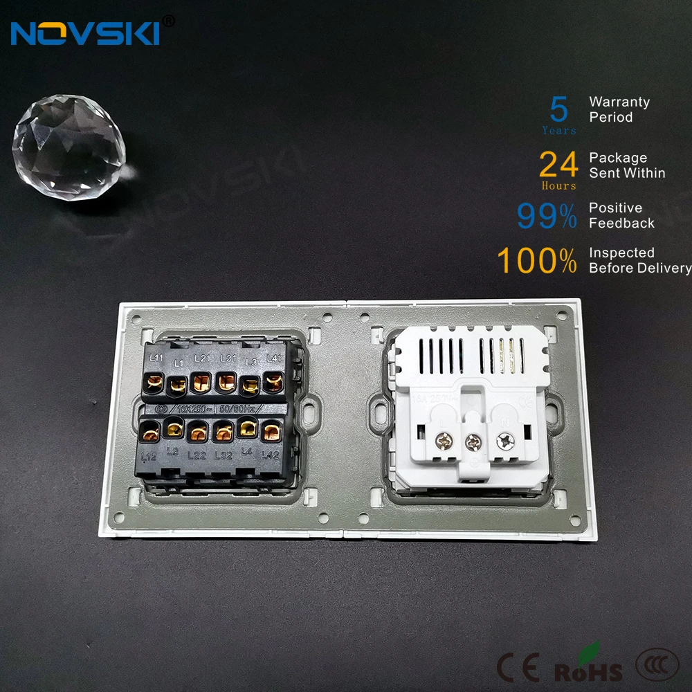 NOVSKI Хрустальная стеклянная настенная розетка USB 2100mA 4 комплекта выключатель питания 16А штепсельная вилка европейского стандарта электрическая розетка со светодиодным индикатором, 86*172 мм, белый, 5 лет гарантии