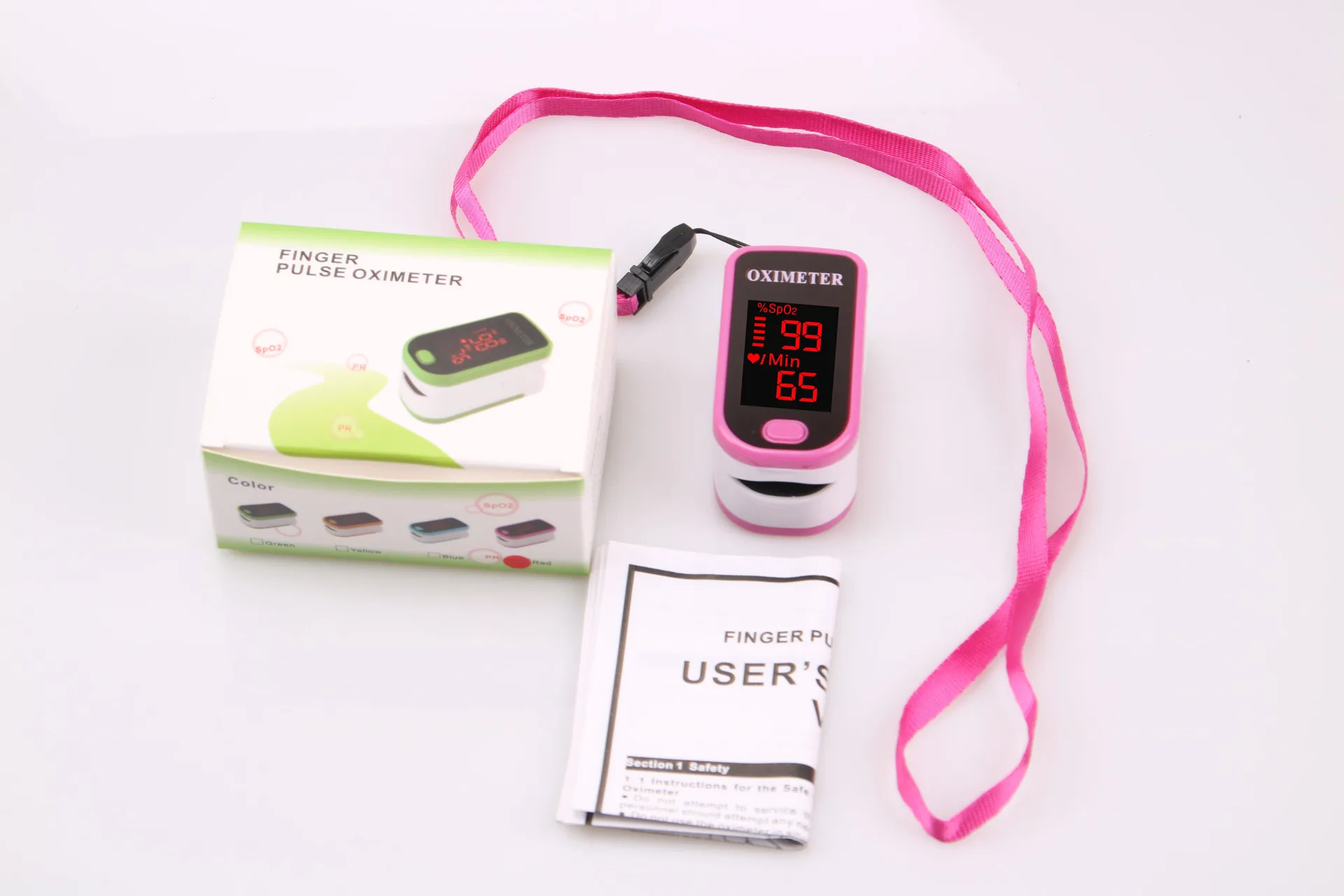 Использование: наблюдение за зданиями, мониторинг процессов транспортировки пациентов, уход за больными, помощь в реабилитации, обслуживание амбулаторных отделений, забота о здоровье семьи. Во время активных физических упражнений это влияет на извлечение импульсных сигналов, необходимо немного расслабиться после измерения артериального давления и кислорода в крови, не следует измерять одновременно, чтобы избежать воздействия на светильник, насколько это возможно. Параметры: Материал: АБС-пластик Тип аккумулятора: 2 батарейки ААА (аккумуляторы в комплект не входят) Напряжение: 2,6 ~ 3,6 V Рабочий ток: 30 мА Расход энергии: < 30 мА Измерение: Насыщение артериального кислорода: Диапазон измерений: 70 ~ 99% Разбор: 1% Точность: ± 2%(70% ~ 70%), неизвестная (≤ 70%) Частота повторения импульсов: Диапазон измерения: 30 ~ 240 BPM Разрешение: 1bpm Точность: ± 1 bpm или ± 1% Вес: около 40 г Размеры (приблиз.): 60*35 мм/2,36*1,38"