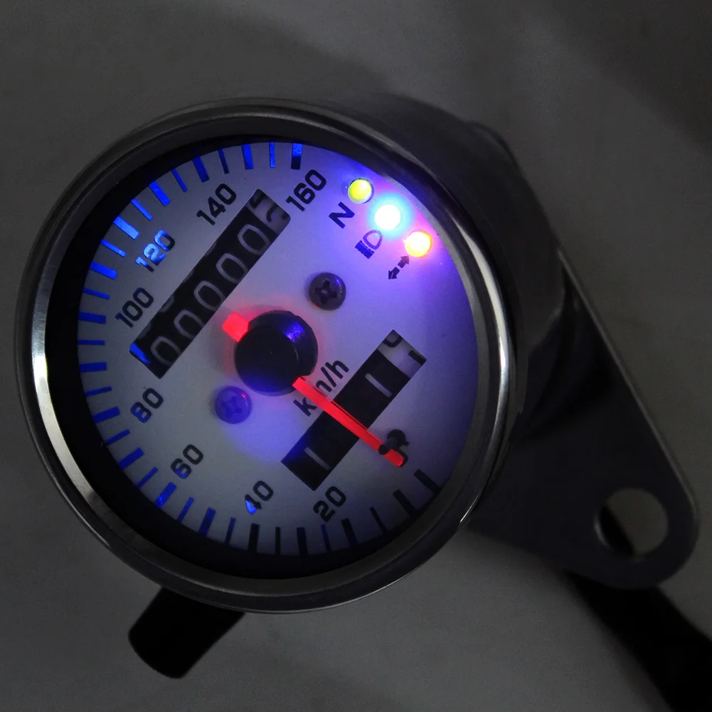 Характеристика: Conditon: Aftermarket 100% новый Материал: железо Напряжение: 12 В постоянного тока Форма: круг Общий механический интерфейс линии скорости Высокая емкость и практичность, подсветка светодиодной подсветки. Цвет: как на картинке Размер: указан на картинке Световой индикатор справа от одометра: -Первый нейтральный; (как показано на рисунке, при включении он переходит на зеленый цвет) -Второй-инструкции по фару; (при включении он включается в синий цвет) -Последняя из них-инструкции по повороту влево и вправо. (При включении включается желтый цвет) Все огни станут яркими, так как в целом 7 проводов включены Подходит для всех мотоциклов В комплект входит: 1x мотоцикл двойной одометр спидометр
