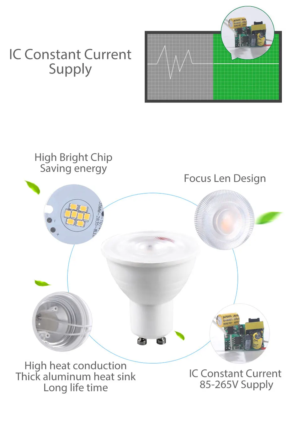 Входное напряжение (В): GU10:85-265 В переменного тока
