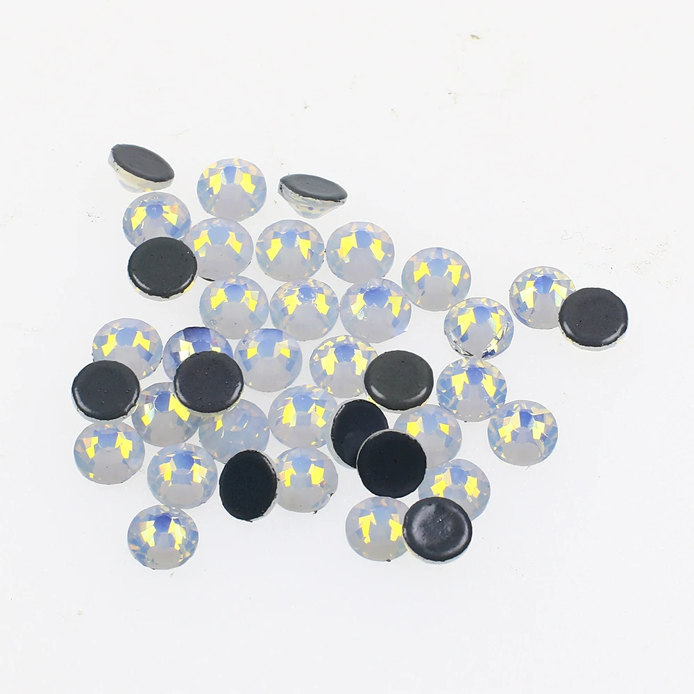 Круглые стразы с горячей фиксацией, Хрустальное стекло, блестящий клей, стразы с плоской задней поверхностью, горячая фиксация Rhines