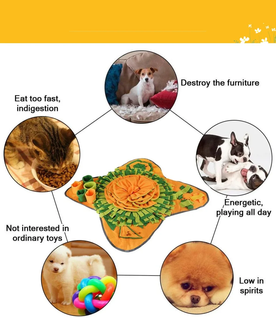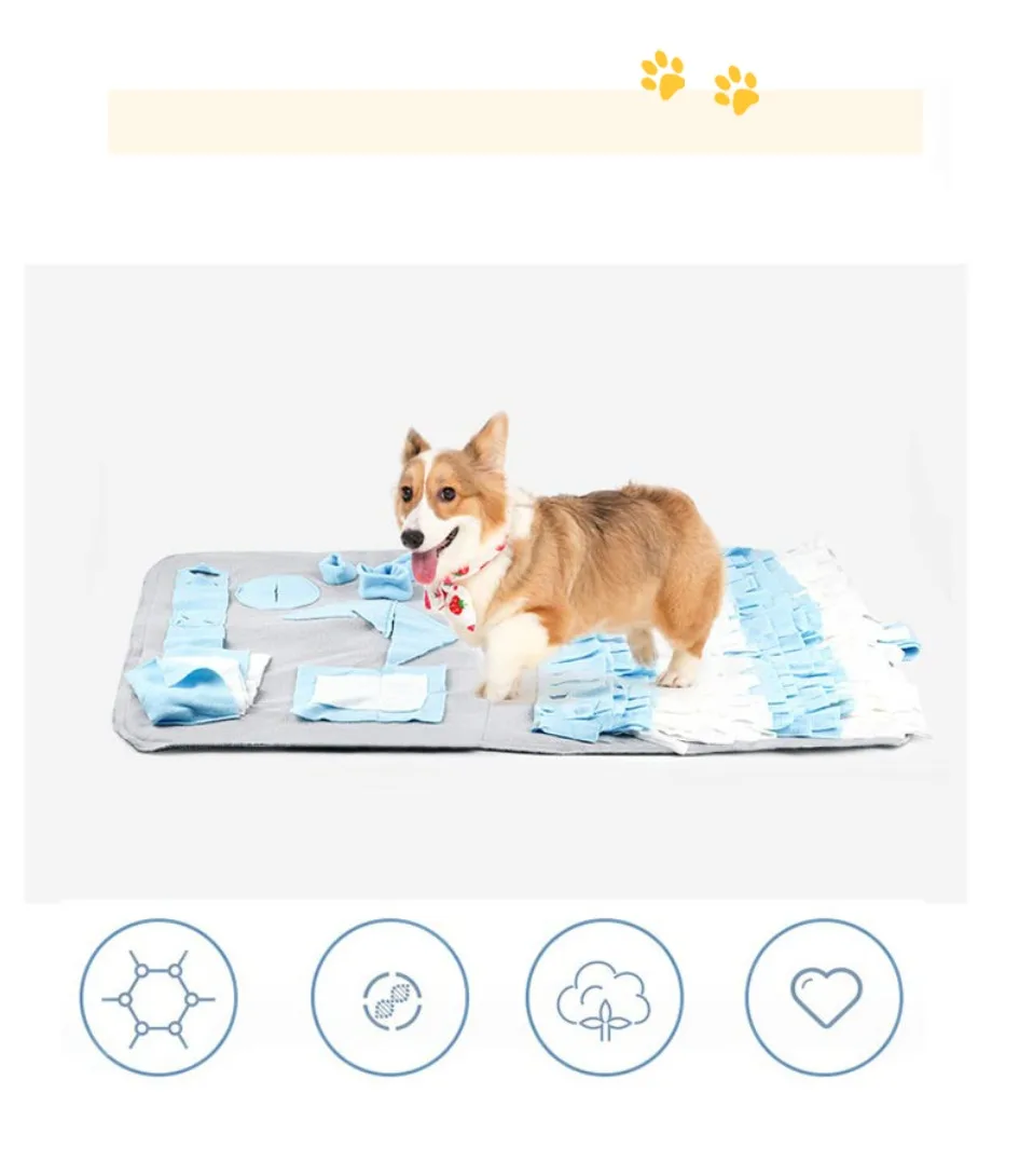 1. Это уникальный Тренировочный Коврик для собак с закусками или маленькими игрушками, спрятанными в плотных бутылках для вашей собаки. Это помогает тренировать запах собаки и может потреблять энергию собаки и помогает собаке похудеть.