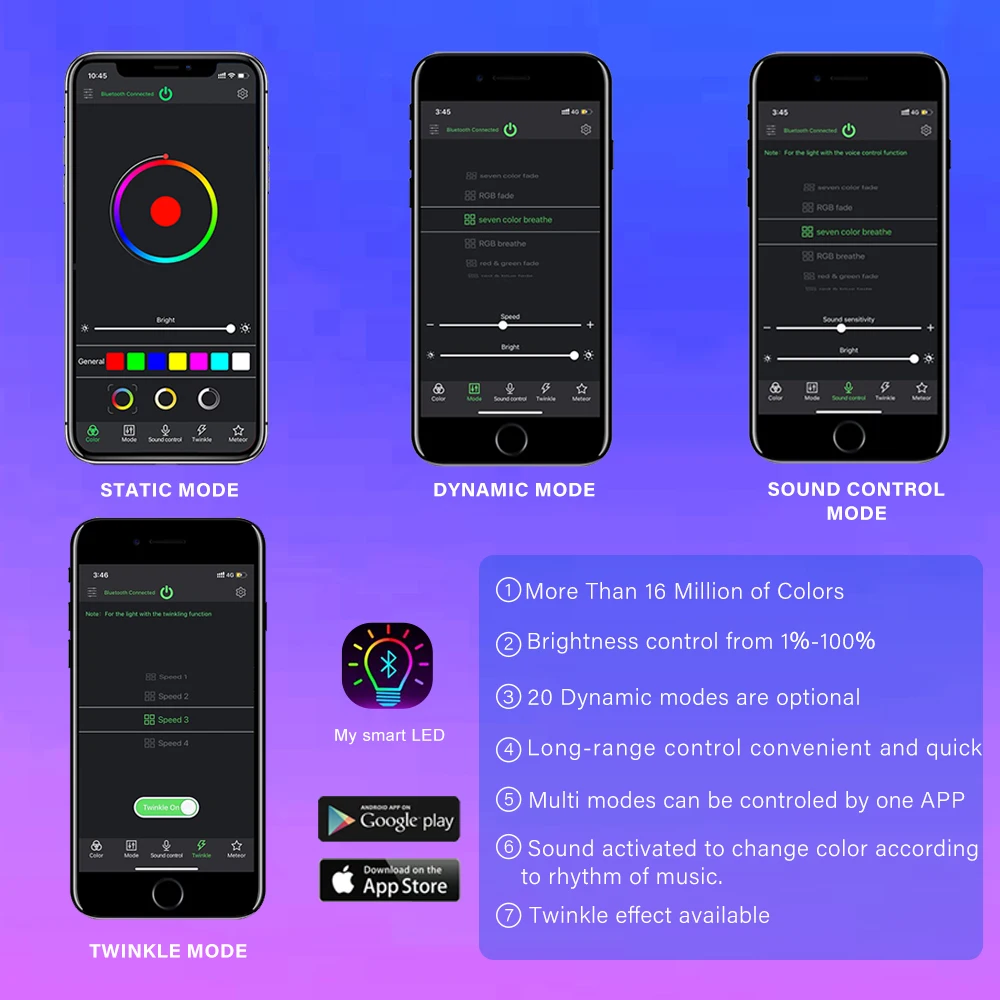1x 50W RGBW twinkle light engine(Bluetooth APP control+ Sound control)