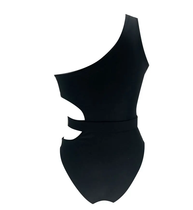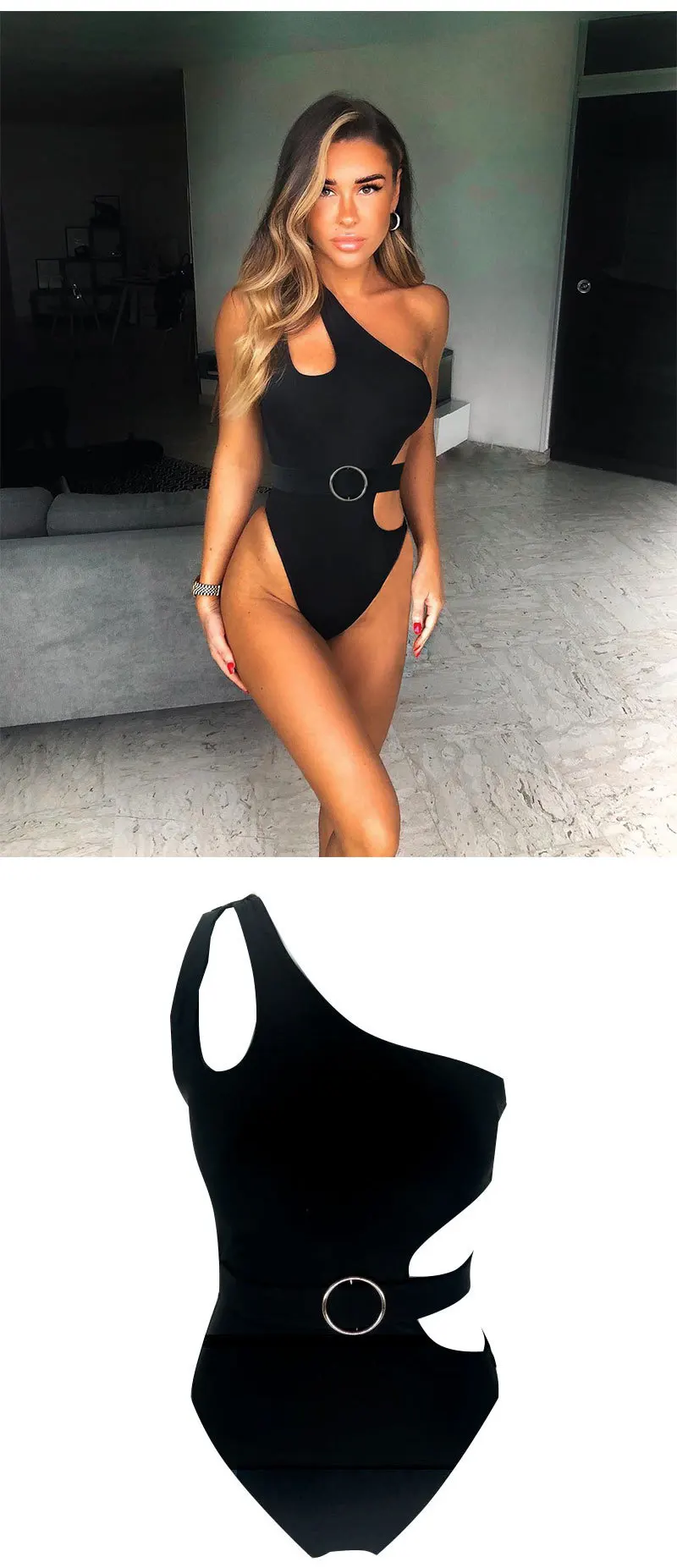 Sexy Black Bikini One Piece Women's Swimming Suit One Shoulder Top Swimwear Adjustable Belt Swimsuit 2020 Bandage Swimwear