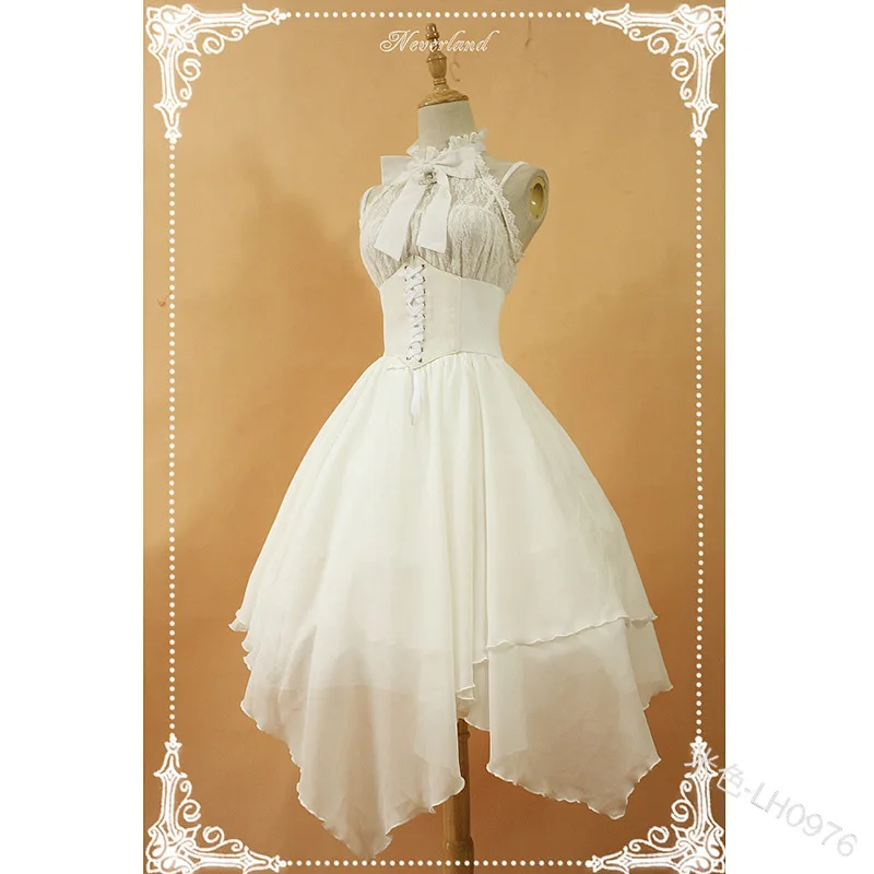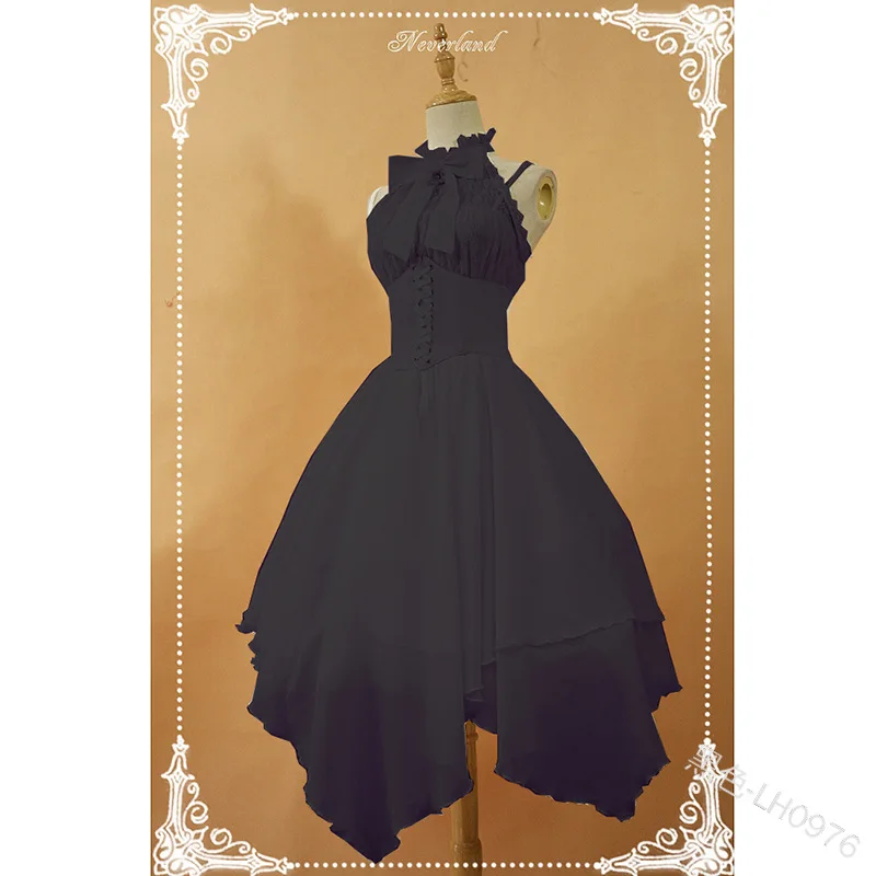 Пикантные с лямкой на шее, без рукавов, платья для вечеринок для женщин Плиссированное шифоновое платье 2020 Лето kawaii для девочек в стиле «Готик лолита»; Большие размеры винтажное платье