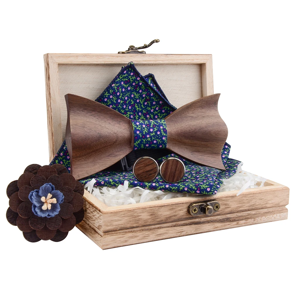 Новый 3D деревянный галстук-бабочка Печать Хлопок Карманный квадратный запонки брошь набор для мужчин Свадебный деревянный ящик Аксессуары Бабочка Gravata подарок