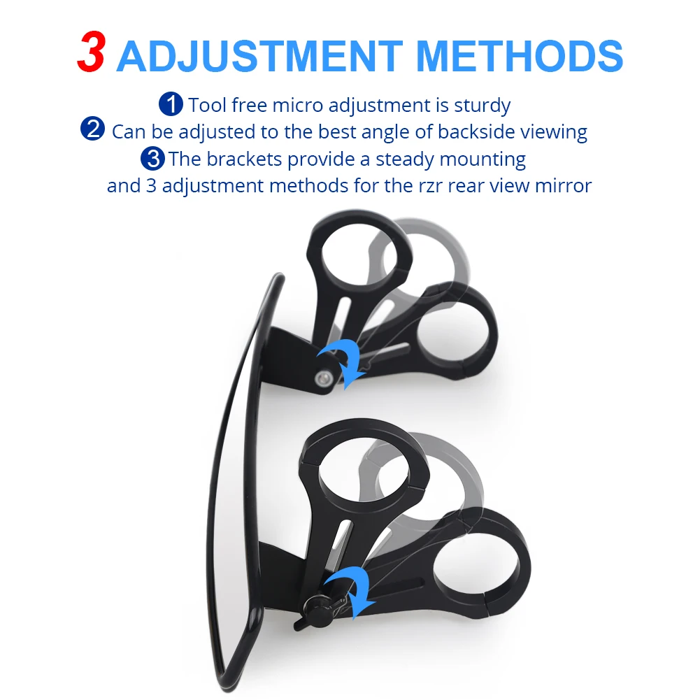 【 3 способа регулировки 】-микрорегулировка без инструмента прочная, кронштейны обеспечивают устойчивое крепление и 3 способа регулировки для зеркала заднего вида rzr, устойчивые к трению и коррозии, можно отрегулировать под наилучшим углом обзора сзади.