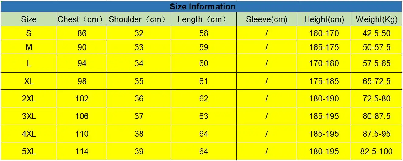 1. Please check the size chart before you are going to place an order. you need to measure your chest and shoulder ,Before you choose the size . We sincerely hope that you can buy clothes that fits completely. 2. Because different measurement methods, stretch intensity measured data may exit up and down about 1-2 cm error. (1 inches= 2.54 cm) 3.If you are not sure your size, please contact us.Or leave the message of your height and weight,your chest and shoulder width .we will recommend the right size for you.