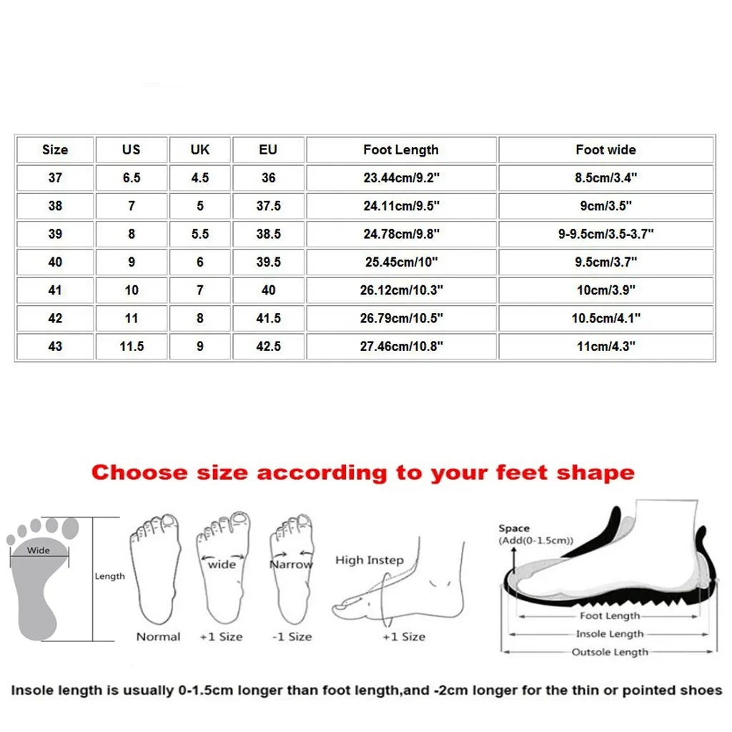 Полезные советы:Различные стили обуви, пожалуйста, выберите размер в соответствии с типом вашей стопы