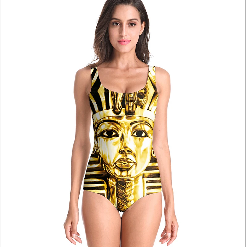 Купальный костюм, один предмет, купальный костюм, новинка 2020, золотой купальник, египетская гробница, Фараон, цифровой принт, пляжный консервативный цельный купальник