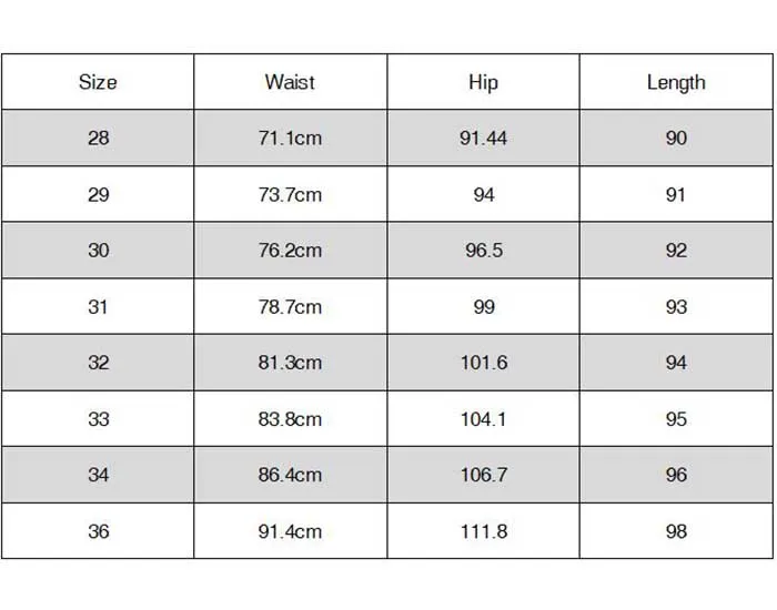 Таблица размеров