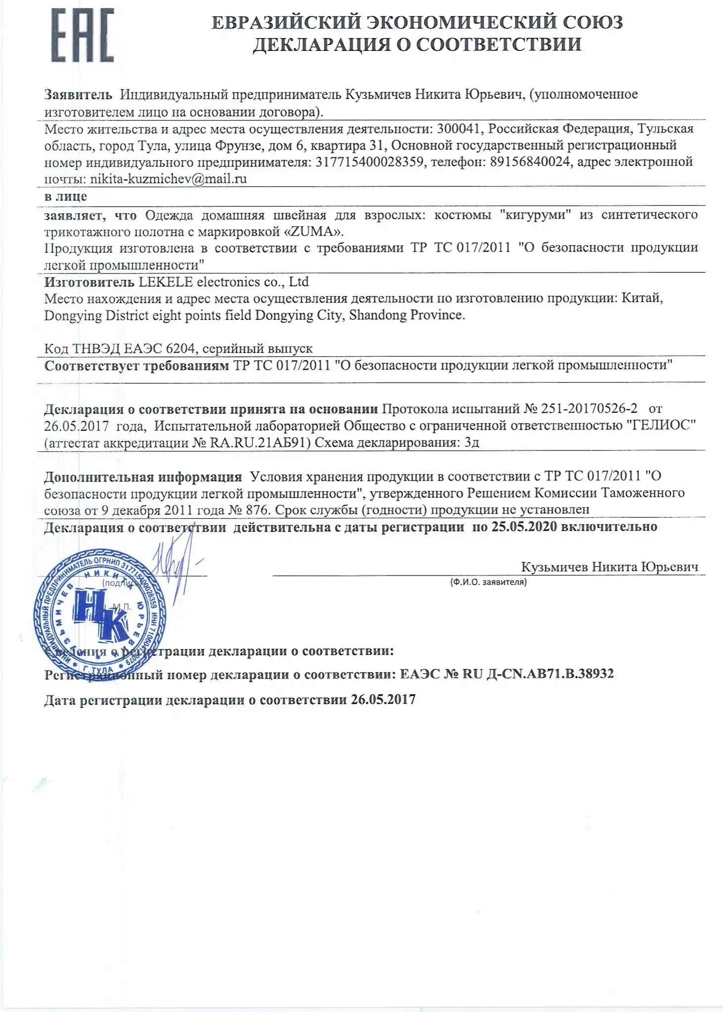 Кигуруми бренда MyPajamas.ru и состав ткани, из которой их производят, соответствуют ГОСТам и требованиям по степени воздухопроницаемости, не имеют запаха, имеют устойчивость по окраске к стирке, не окрашиваются «к поту» и сухому трению. Кигуруми бренда MyPajamas.ru полностью соответствуют требованиям ТР ТС 017/2011 «О безопасности продукции легкой промышленности» и МУК «Гигиеническая оценка одежды для детей, подростков и взрослых.»