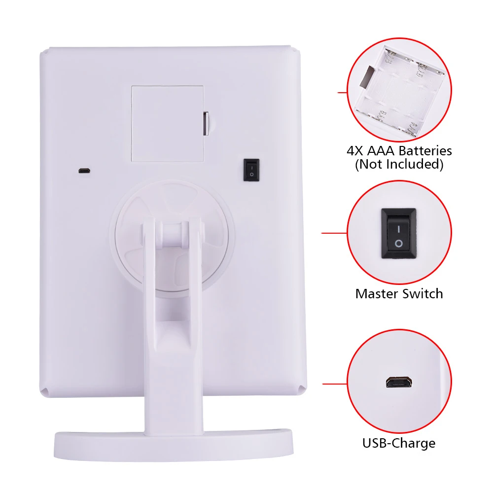 Без шнуров: Двусторонняя мощность ed, 4 * AAA батареи (не входят в комплект) или управляется внешним портом Mirco USB, вы можете использовать внешний аккумулятор, настенное зарядное устройство USB, настольный ПК или ноутбук на светильник, резервный источник питания, когда батареи заканчиваются.