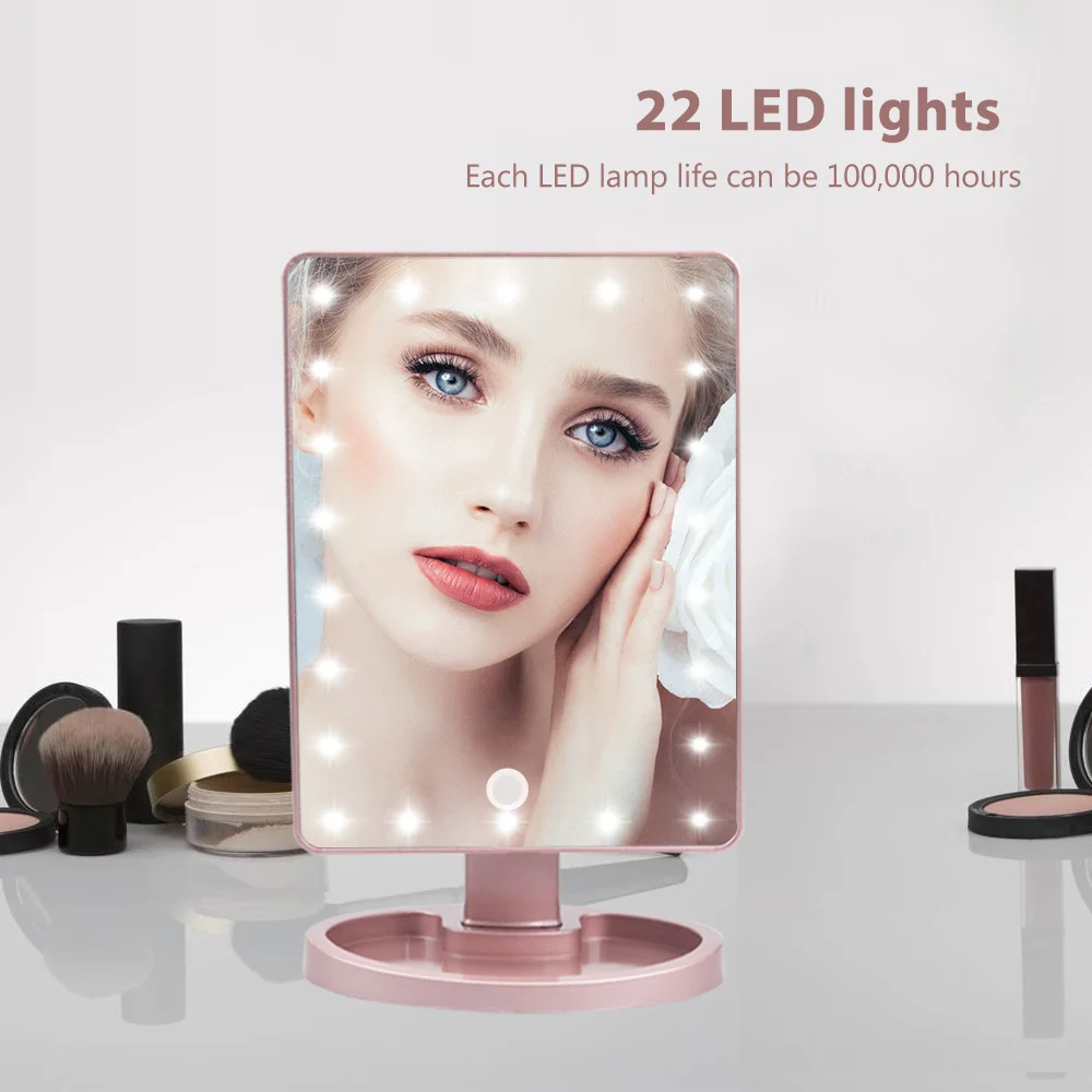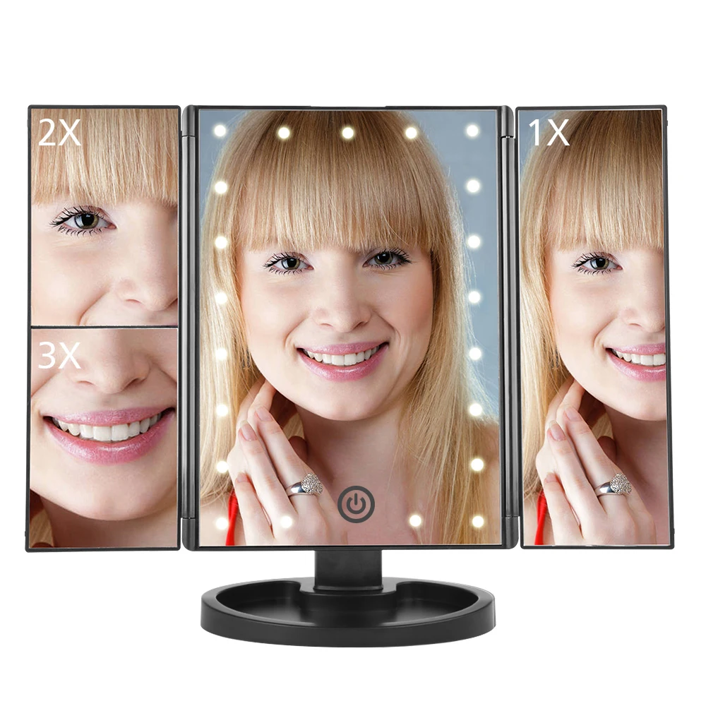 Светодиодный сенсорный зеркальный экран, Настольное электронное сенсорное зеркало для макияжа, увеличение в 1, 2, 3, 10 раз, увеличительное стекло, регулируемое складное зеркало, диагональ 22 дюйма