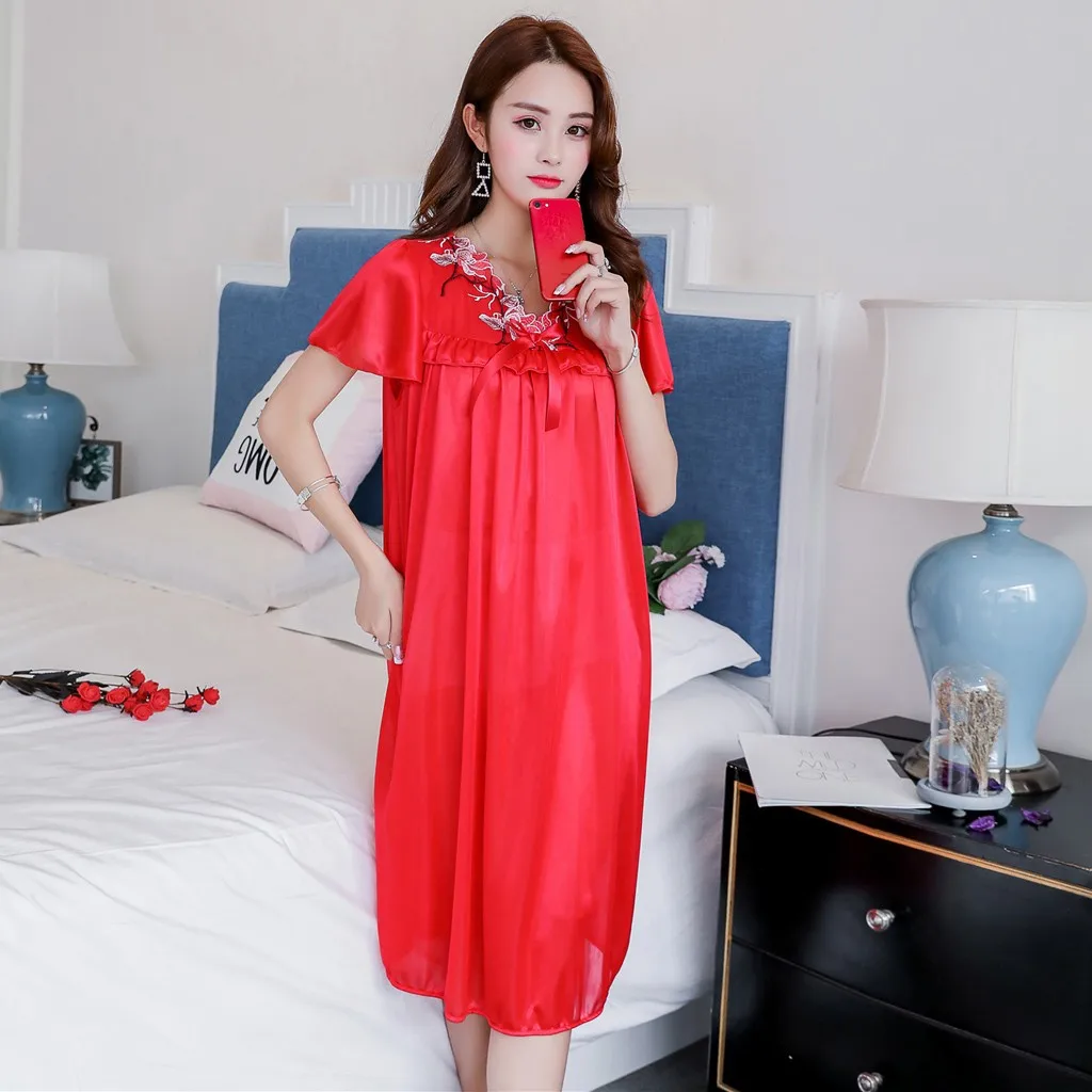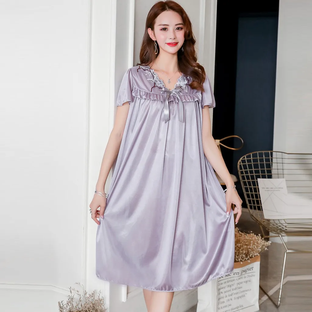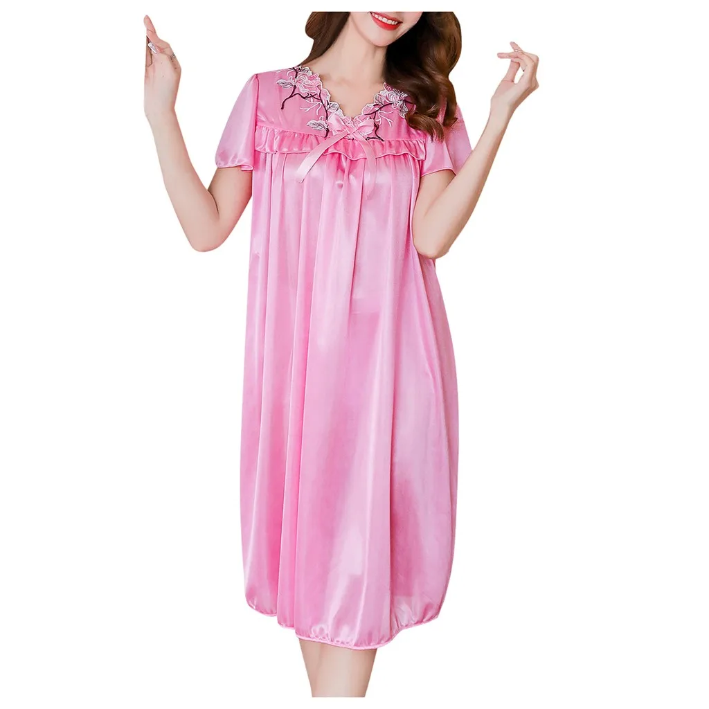 Модная женская домашняя Летняя Сексуальная Дамская ночная рубашка с коротким рукавом, милая Пижама