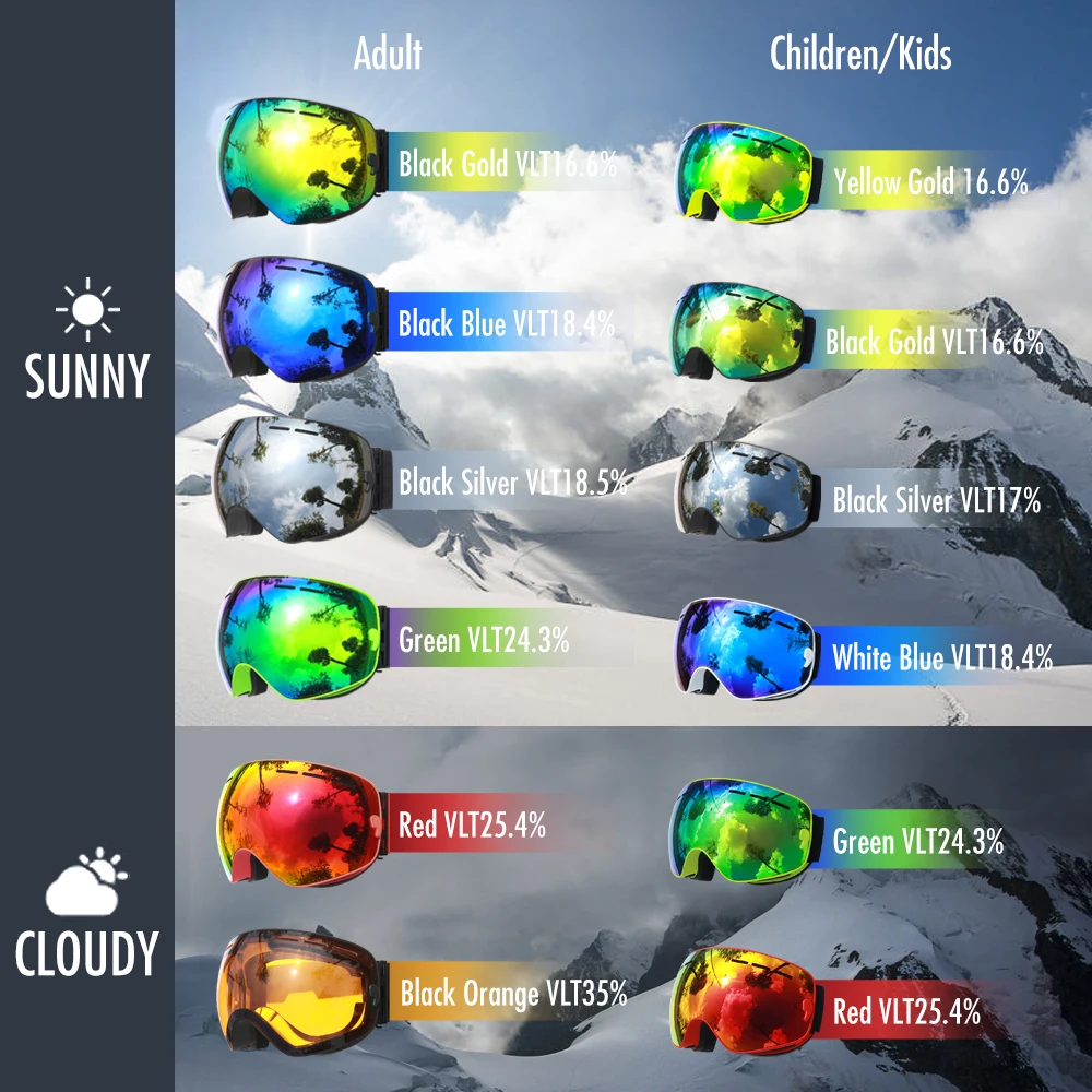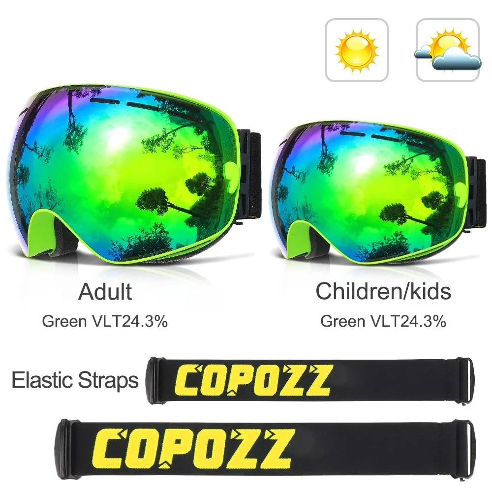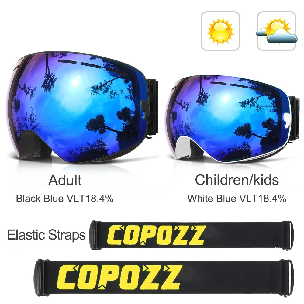 Часто задаваемые вопросы: -Будет ли эта модель лыжных очков COPOZZ работать в солнечную и облачную погоду? Да, пожалуйста, проверьте фото и найдите нужный цвет. -Подойдут ли они также маленьким девочкам или Мальчикам (детям)? Да, этот комплект включает в себя две лыжные очки, один для взрослых (женщин или мужчин), другой для мальчиков и девочек 4-15 лет. -Есть ли только один размер для этих очков? Обычно есть пары размеров, которые подходят для головы разных размеров. Обычно подходит без проблем. Регулируемый ремешок. - Поставляется ли он с мягким чехлом для очков? Да,Он поставляется с двумя лыжными очками, двумя очками. (Вы можете найти сумки в очках) Посылка включает в себя 2 * лыжные очки (один для взрослых, один для детей) 2 * мягкие сумки Goggle Дружеское Примечание: 1. Пожалуйста, снимите защитную пленку внутри при использовании. 2. Из-за зеркального покрытия могут быть различия в цвете под разными углами зрения. 3. Пожалуйста, не прикасайтесь, не протирайте и не чистите линзу пальцами или жесткими элементами, так как они будут окрашивать или царапать линзу. 4. Пожалуйста, держите очки в мешке или коробке, когда не используете его. 5. Пожалуйста, не используйте тушь для ресниц или другое жирное вещество, чехол не пачкается. 6. Пожалуйста, высушите очки после всех видов спорта на снегу, например, катания на лыжах, сноуборде и т. д. 7. Пожалуйста, не протирайте внутренний объектив, который аннулирует функцию защиты от тумана. 8. Пожалуйста, не надевайте и не выключайте часто во время катания на лыжах или сноуборде, что вызовет серьезные запотевания из-за разницы температур.